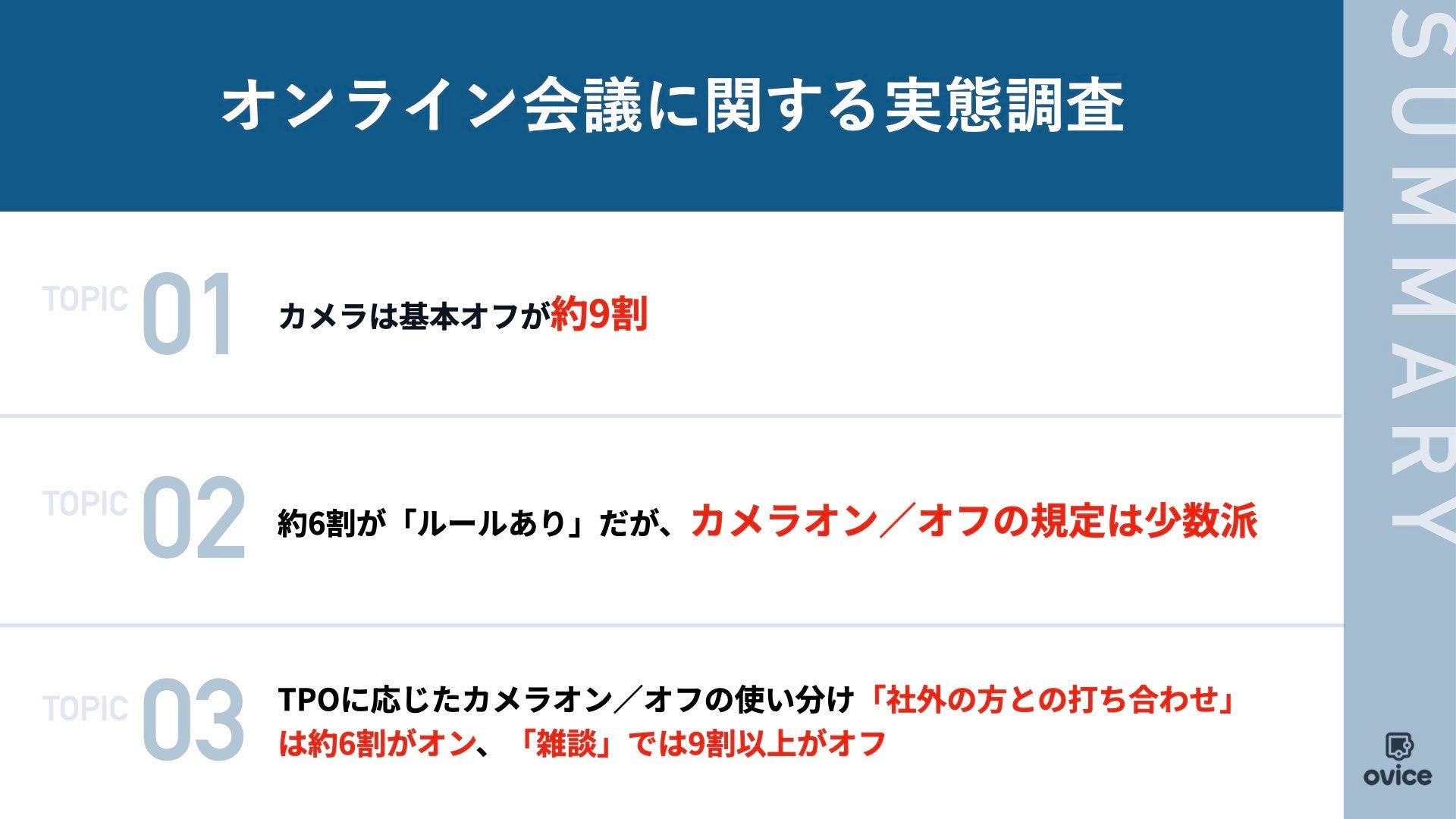 【ハイブリッドワーク下でのオンライン会議のルール調査】オンライン会議では約9割がカメラ基本オフ6割以上が会議のルールを規定するも、カメラのオン/オフはTPOに応じて柔軟な対応
