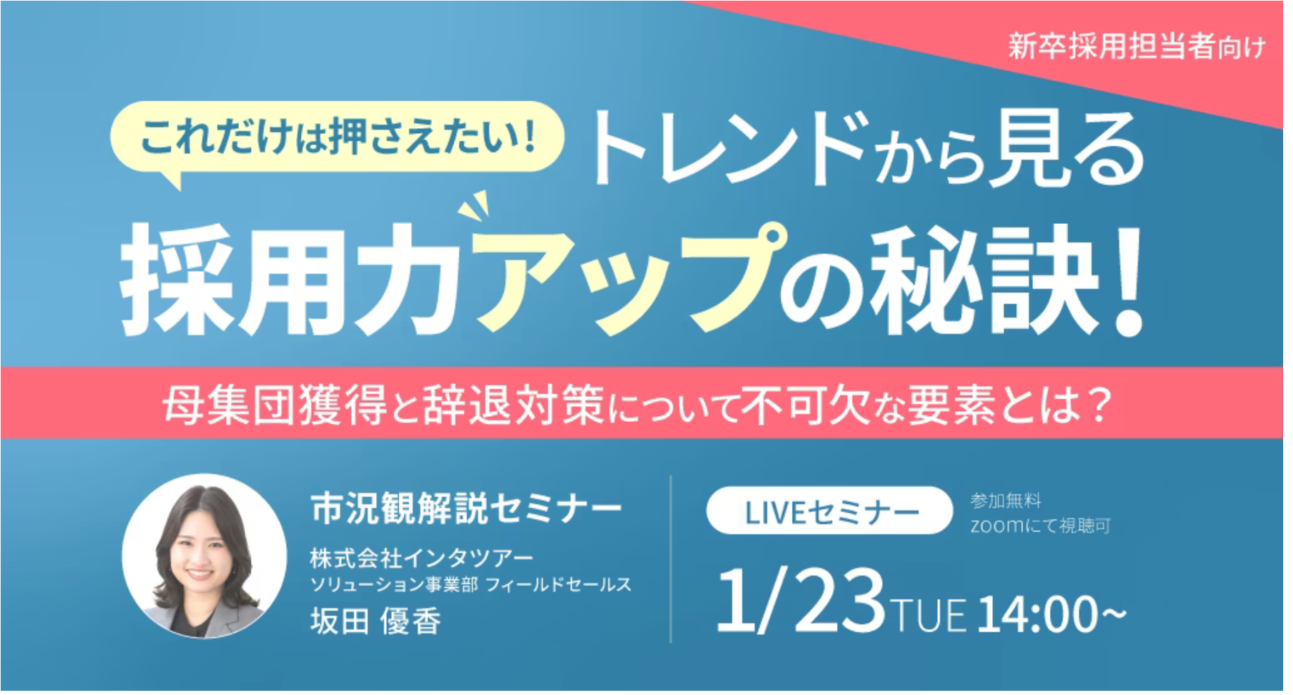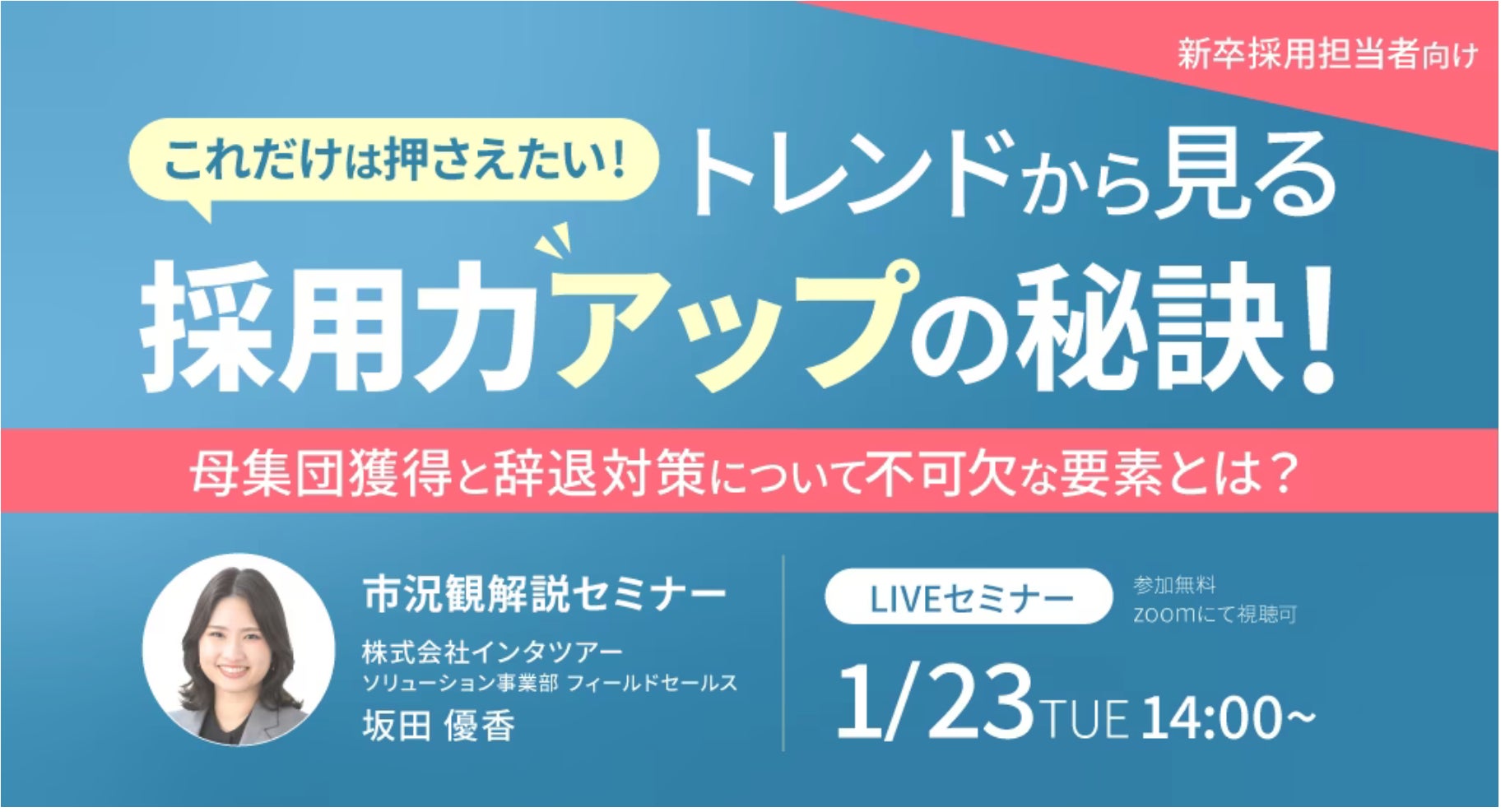 【新卒採用担当者向け】これだけは押さえたい!トレンドから見る採用力アップの秘訣をセミナーで解説|インタツアー(キャムコムグループ)