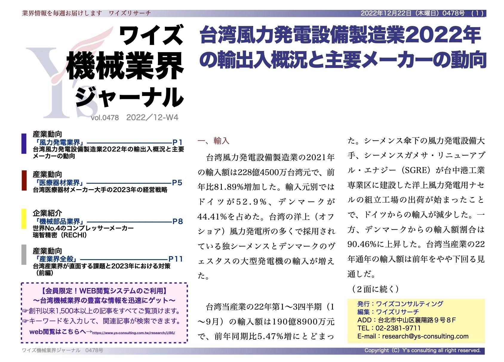 台湾風力発電設備製造業2022年の輸出入概況と主要メーカーの動向<ワイズ機械業界ジャーナル2022年12月第4週号発行>