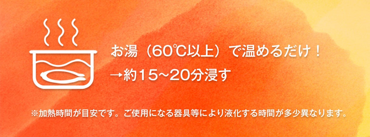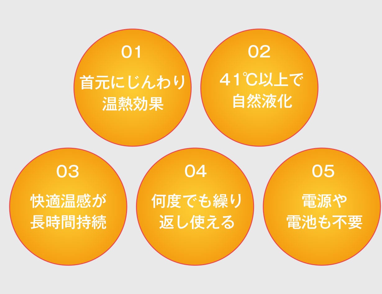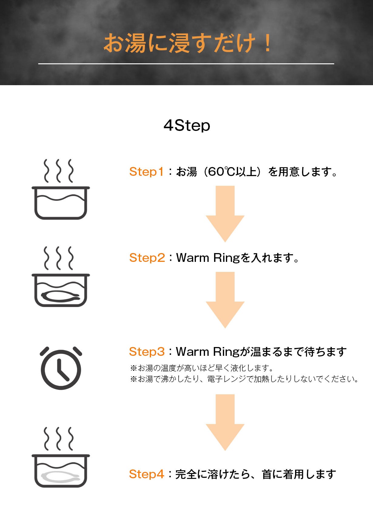 41℃以上で自然液化します!60℃以上のお湯の入ったバケツなどに15~20分間入れるだけで、熱を吸収して、温かいウォームリングになります。
