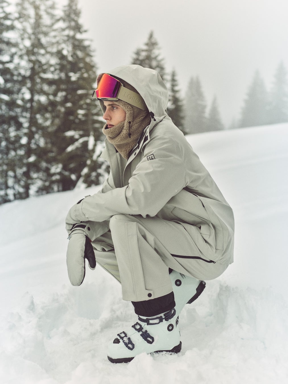 鮮やかな色彩とダークブルーネイビーを基調とした本コレクションは、フォルムと実用性が特徴です。ベースとなるアクセントカラーにラスティックレッドとメープルが用いられ、ゲレンデに鮮やかで明るい輝きをもたらします。メンズは、リーフィーベールとボリアルグリーンを基調に、ノルウェーのオーロラが織りなす壮大な自然の光景を想起させるヴィリジアングリーンがアクセントとして添えられています。