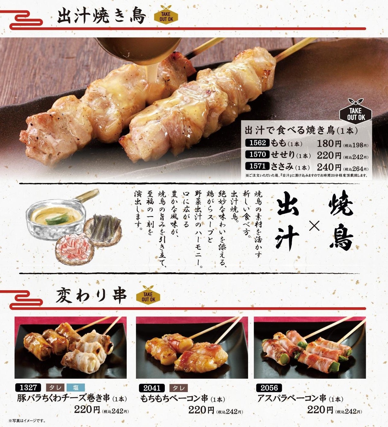 【メニュー】 串焼き 焼鳥×出汁がおすすめ!