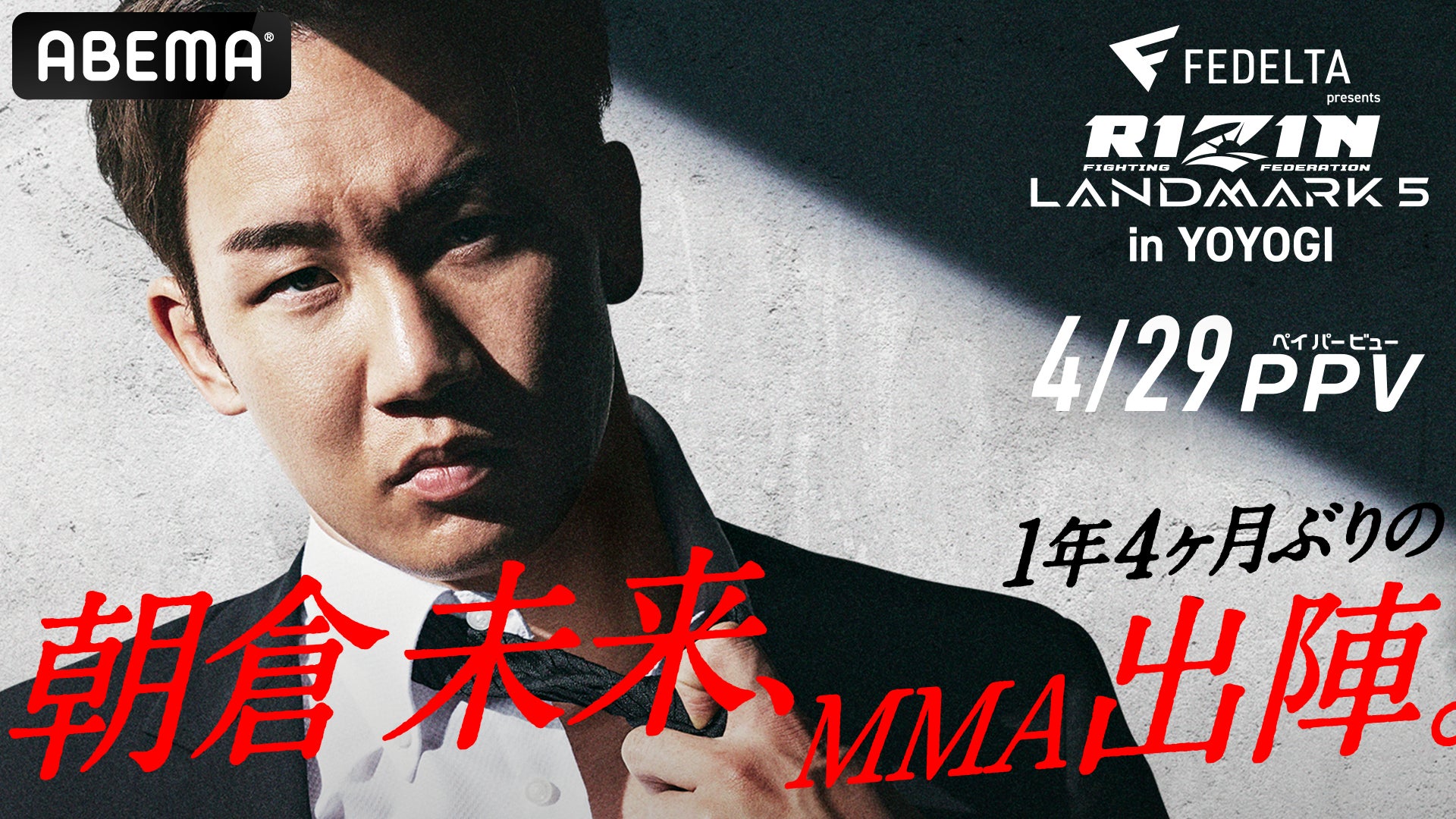 大会チケットは即完売!『FEDELTA presents RIZIN LANDMARK 5 in YOYOGI』を「ABEMA PPV ONLINE LIVE」にて、4月29日(土)16時より生中継