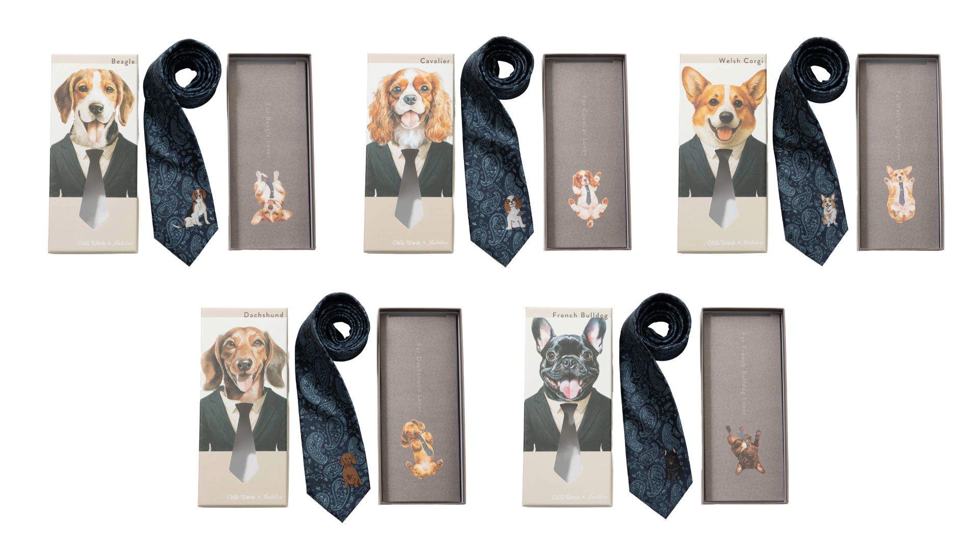 遊び心溢れる犬種別パッケージの『ウォッシャブル ドッグネクタイ』が新発売。