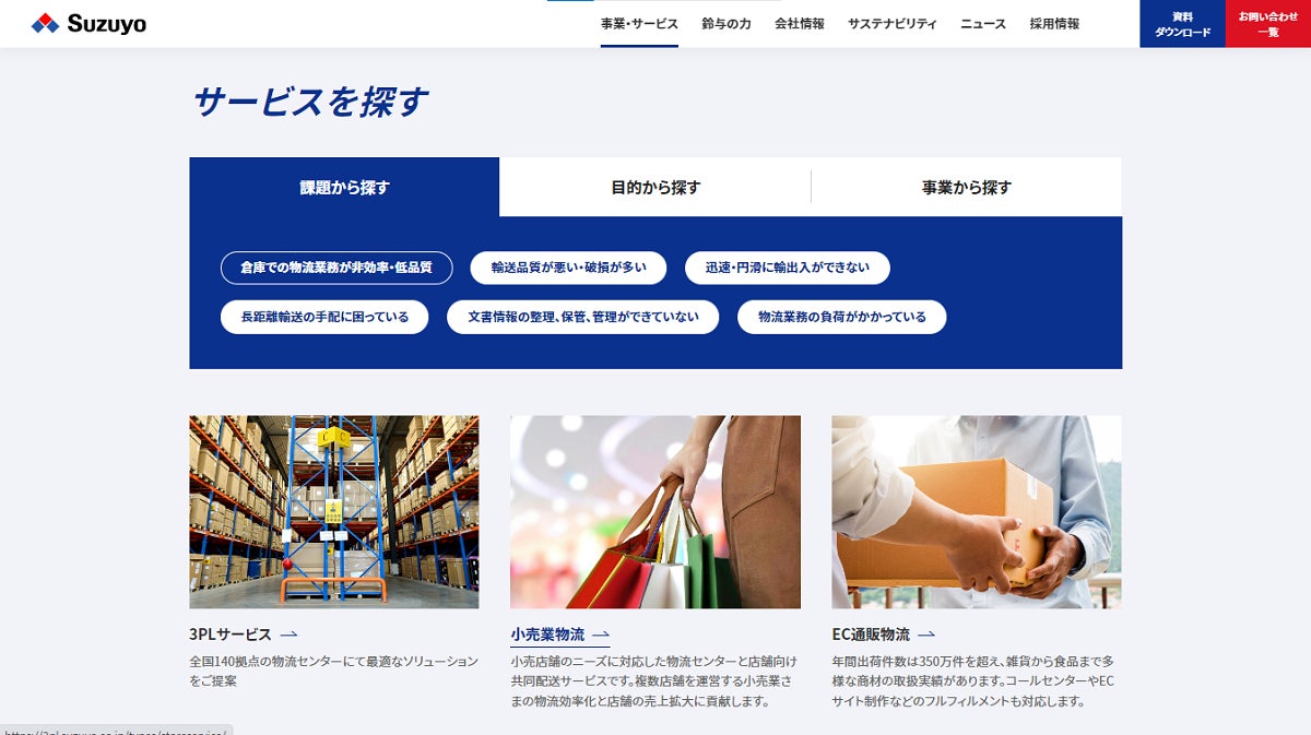 ●課題、目的、事業からサービスを探す(https://www.suzuyo.co.jp/business/)