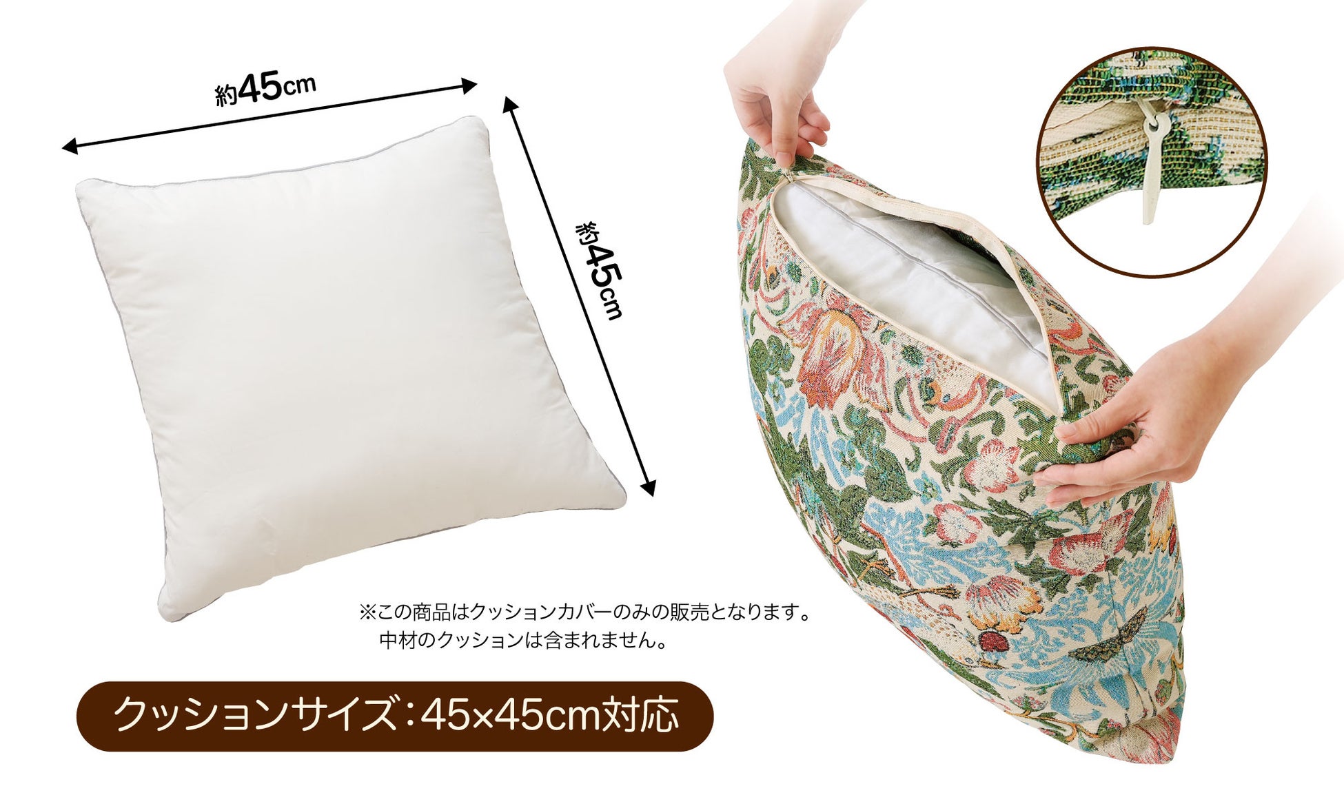 ファスナー式なので、お使いのクッションにサッと被せると、お部屋の雰囲気を簡単にオシャレにコーディネート。