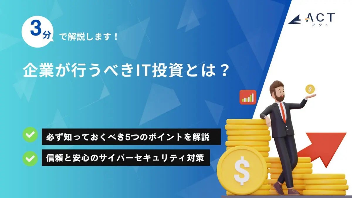 今年30周年を迎え、サイバーセキュリティ事業などを行う株式会社アクト(本社:東京都文京区、代表取締役CEO 小林 智彦 、以下 アクト)は【3分で解説!企業が行うべきIT投資とは?】のホワイトペーパーを公開しました。