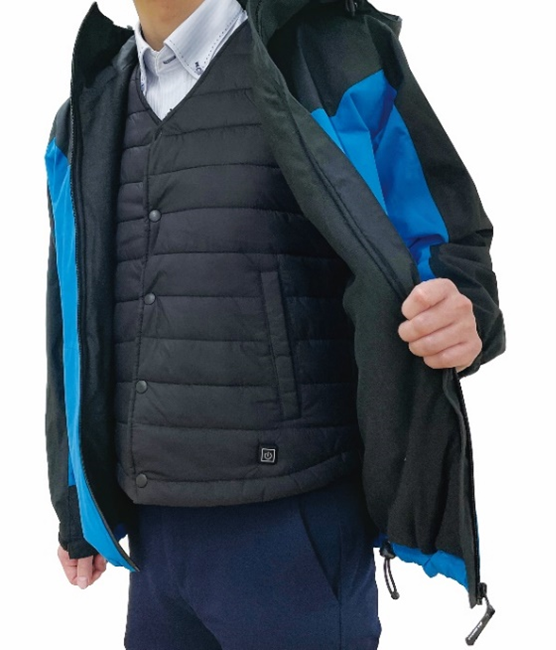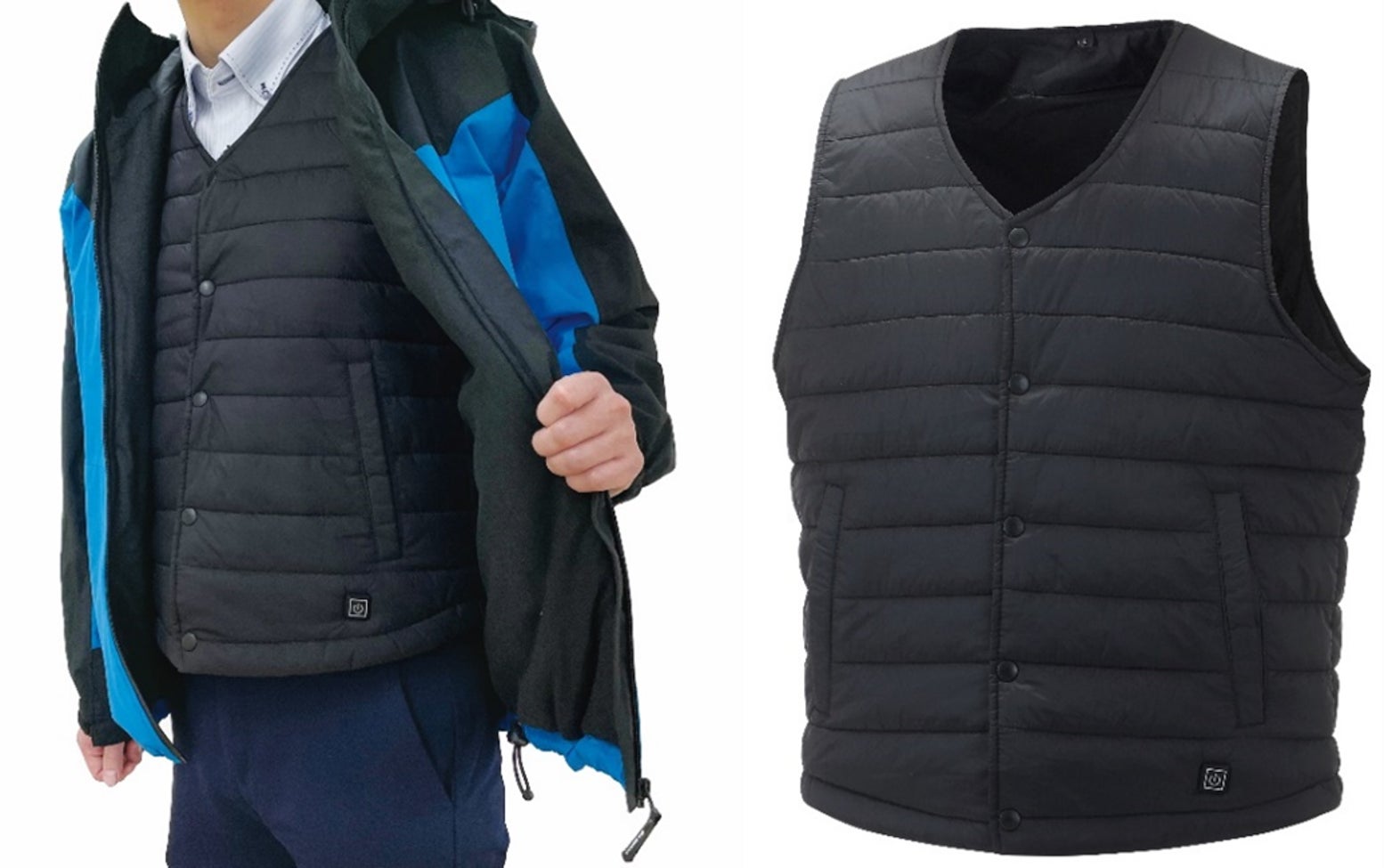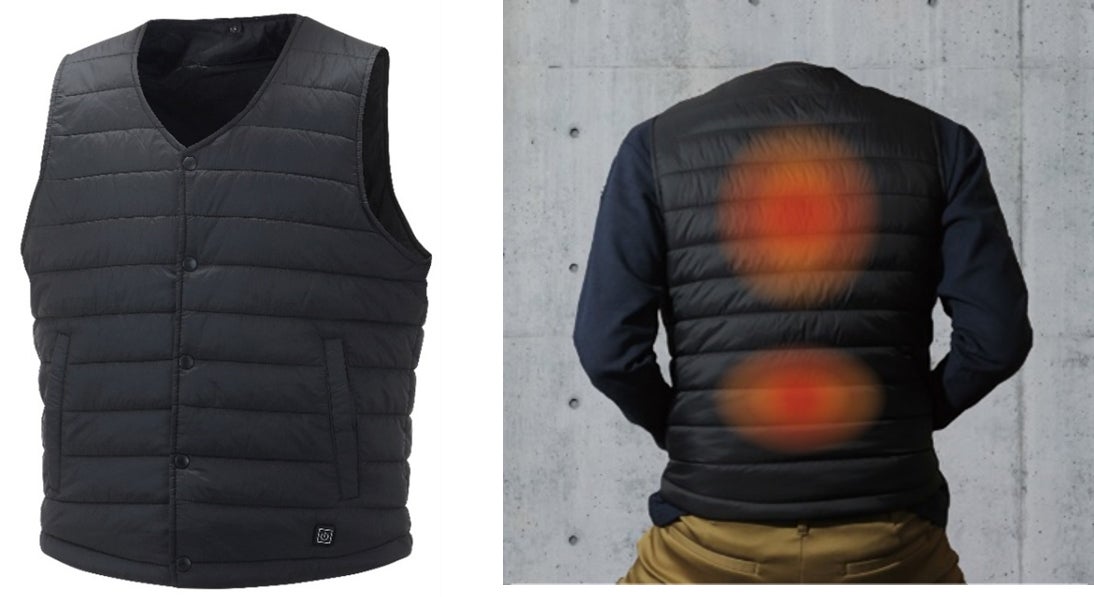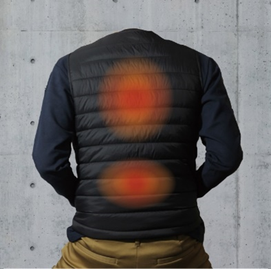 3段階の温度調節+電源オフで、冬の激しい温度変化に柔軟に対応するヒーター付きのインナーベスト。