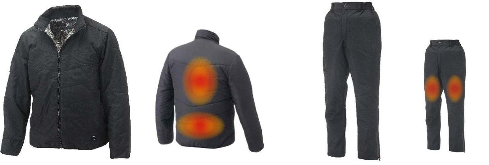 昨年も発売した「ヒーター付きウェアシリーズ」は、シンプルなデザインでコーディネーションしやすく、薄手ながらも暖かい、寒さの厳しい冬におすすめの防寒アイテムです。今年は、昨年まで胸に設置していた3段階で温度調節ができるスイッチを、裾に取り付けることで、扱いやすくリニューアルいたしました。市販のモバイルバッテリーを使用するため、汎用性が高いことも特徴です。また、低温やけど防止の二重安全機能つきのため、安心してお使いいただけます。