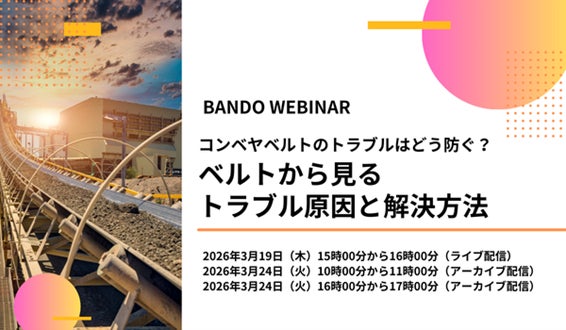 バンドー化学株式会社(本社:兵庫県神戸市)は、ウェビナー「コンベヤベルトのトラブルはどう防ぐ? ベルトから見るトラブル原因と解決方法」を開催いたします。
