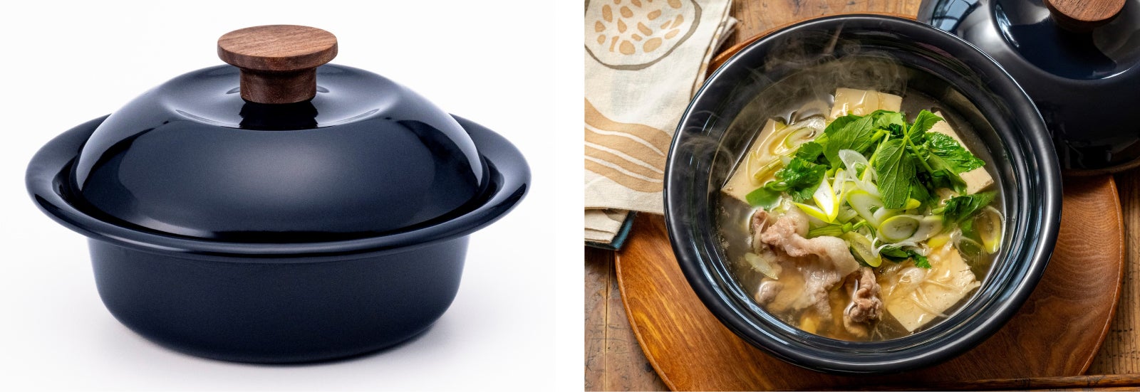 とろりとしたスープに溶け込んだ、麹のまろやかなコク。やさしい味わいながら、しっかりとしたうまみも感じます。1人前ずつの個包装になっているため、小さなサイズの『銘々鍋』での調理にぴったりの鍋キットです。においが残りにくく、色移りもしない琺瑯素材は、こうした鍋商品とマッチします。