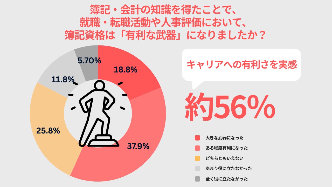 3. 【キャリアへの武器】 56.7%が、就職・転職において簿記は「有利な武器になった」と実感。