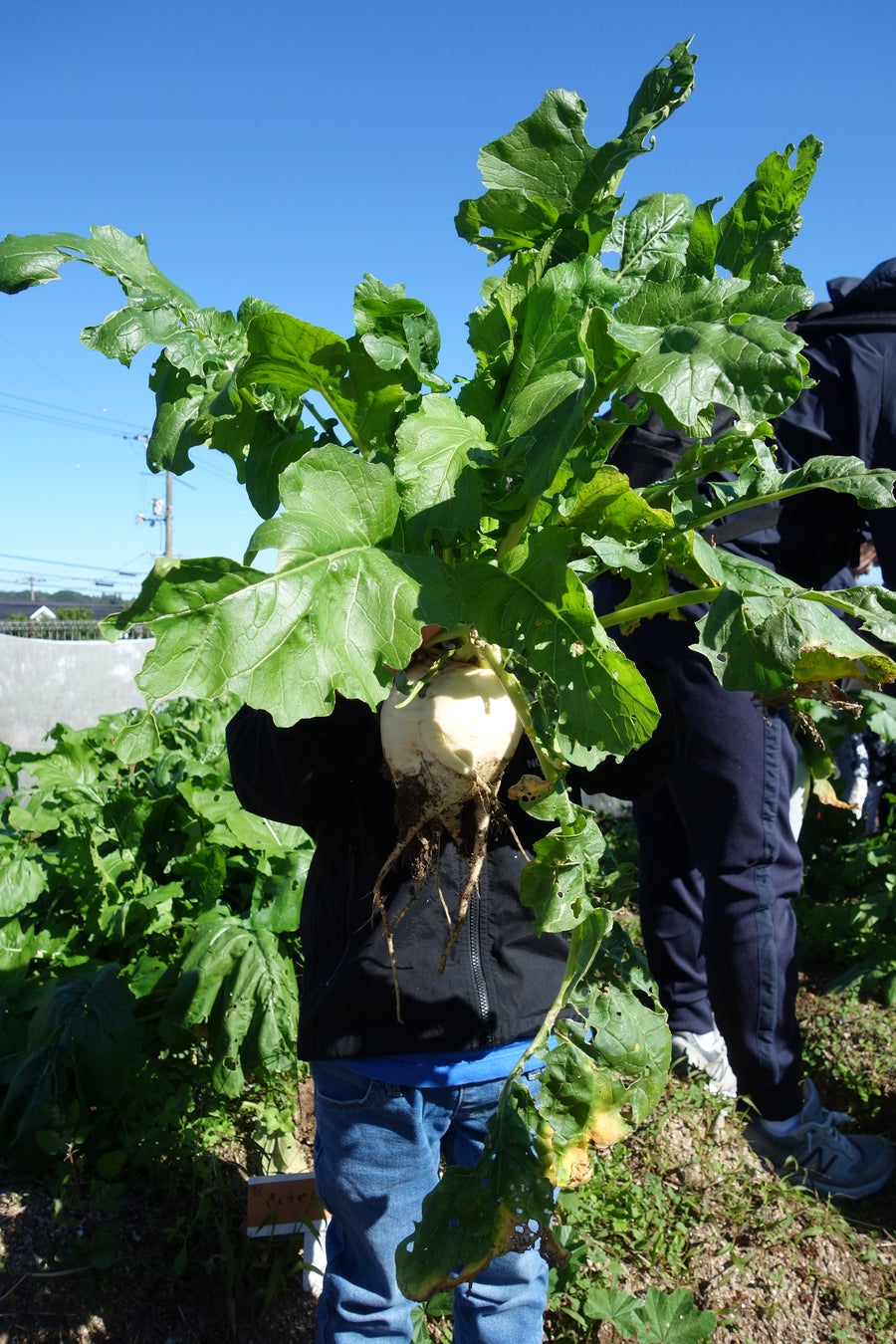 このプロジェクトでは、学生と高校生が協力し、乳幼児とその保護者向けの体験イベント(大根の収穫体験等)の企画・運営、親子で野菜に親しむための食育パンフレットの作成を行っています。