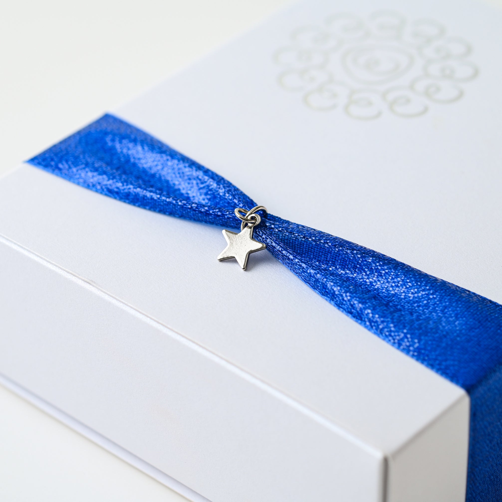 天の川を模したブルーリボンに星が一粒煌めくチャームをつけた特別パッケージは、7月7日七夕までの限定販売となります。日頃の感謝を伝えるプレゼントや夏のお手土産にぜひご利用ください。