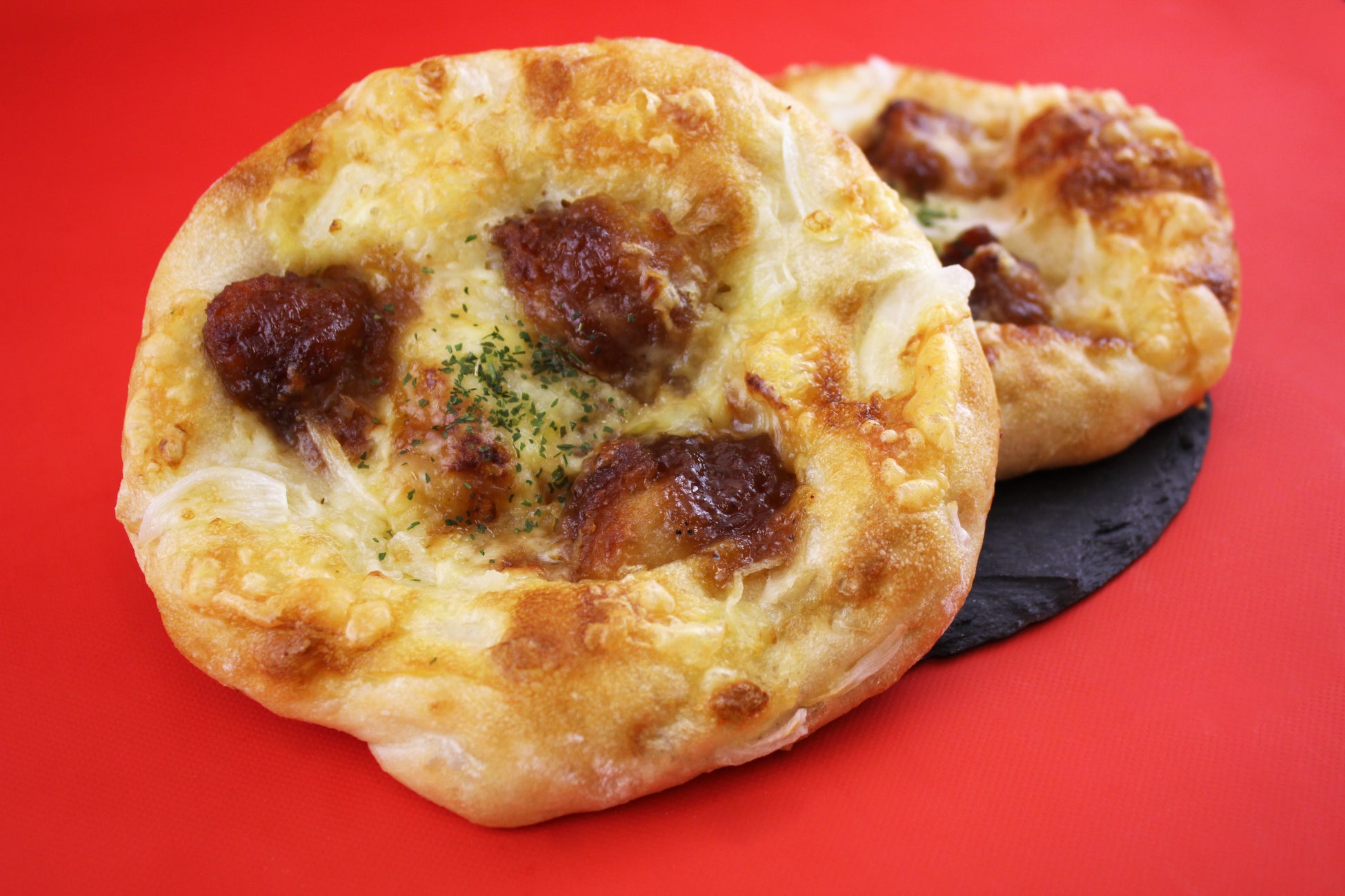 醤油だれをかけた唐揚げと、オニオンスライスをトッピングしたもっちり噛み応えのあるピザです。もちもちしたピザ生地と、ゴロっとトッピングされた唐揚げは食べ応え抜群。リベイクすると表面のカリっとさが増し、更に美味しくお召し上がりいただけます。
