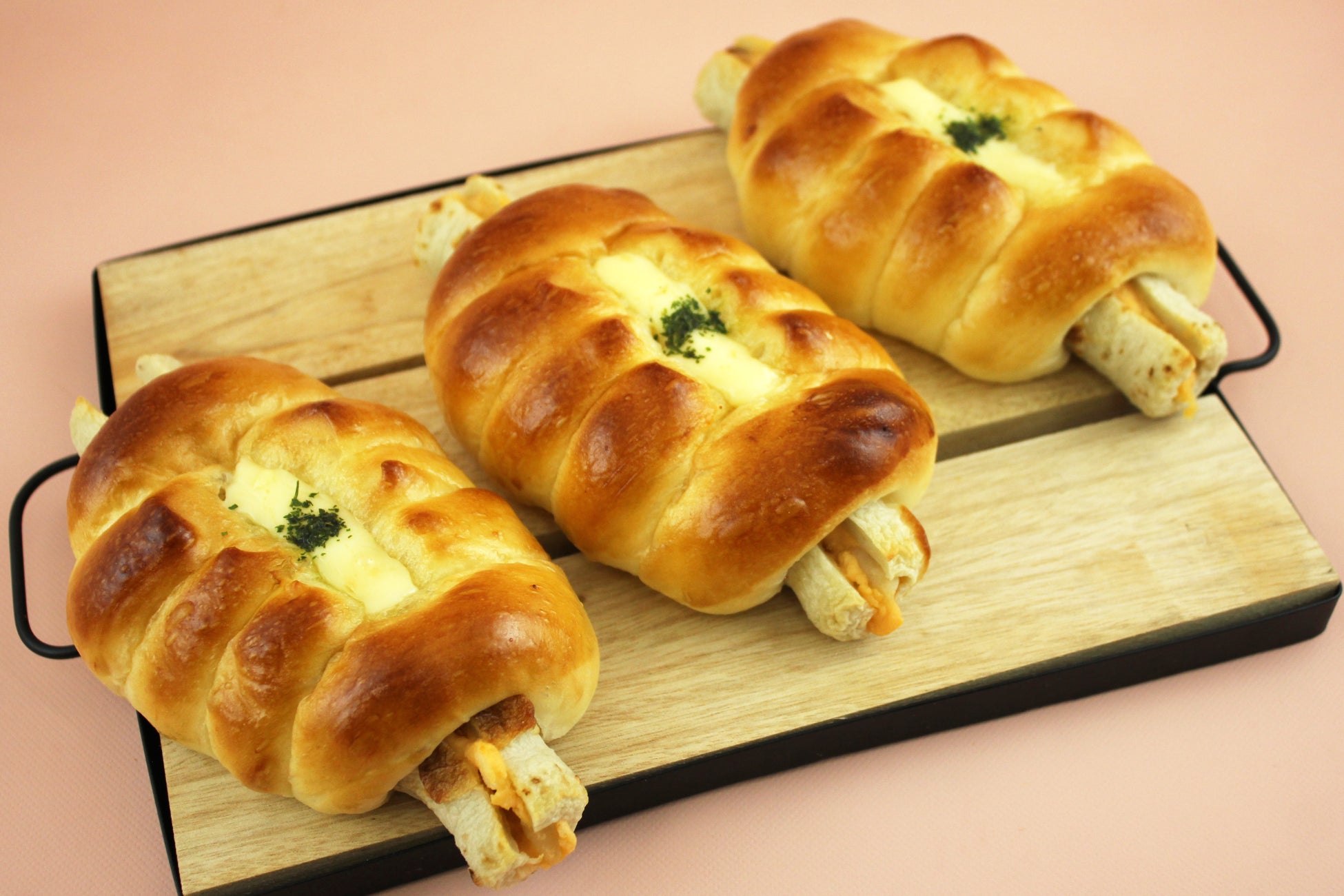 北海道産のばれいしょと明太子を使用したタラモサラダ入り竹輪を、ふんわりとしたパンで包んだ北海道のご当地パンです。タラモサラダはお子様でも食べやすいまろやかな辛味で、竹輪との相性も抜群。ふわっとしたパンと竹輪の歯ごたえをお楽しみください。