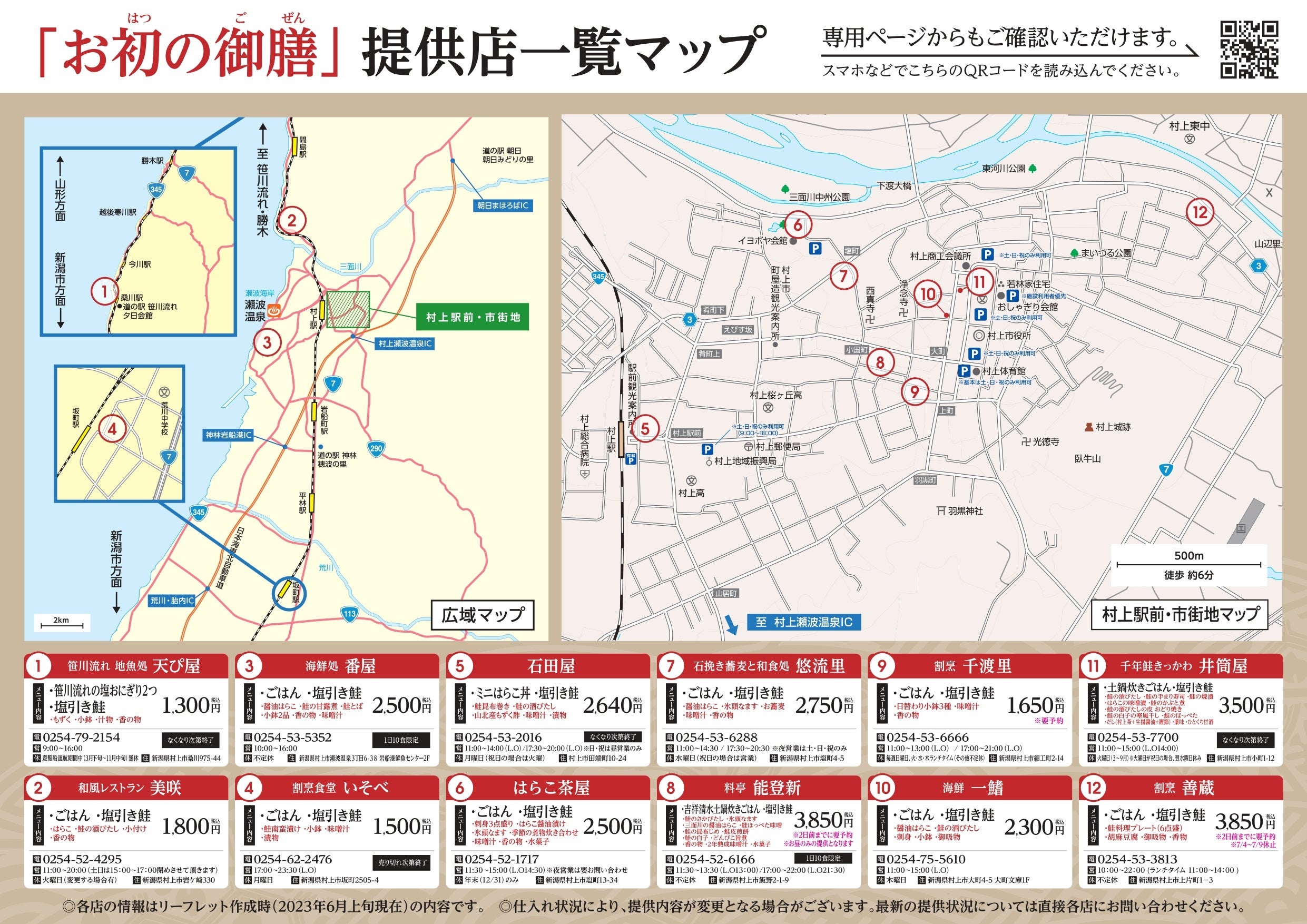 メニュー:土鍋炊きごはん ・塩引き鮭・鮭の酒びたし・鮭の手まり寿司・鮭の焼漬・はらこのみそ漬け・鮭のかぶと煮・鮭の酒びたしの皮おどり焼き・鮭の白子の寒風干し・鮭のほっぺた・だし[村上茶+生揚醤油+カツオ節]・薬味・一口甘酒(3,500円)※なくなり次第終了