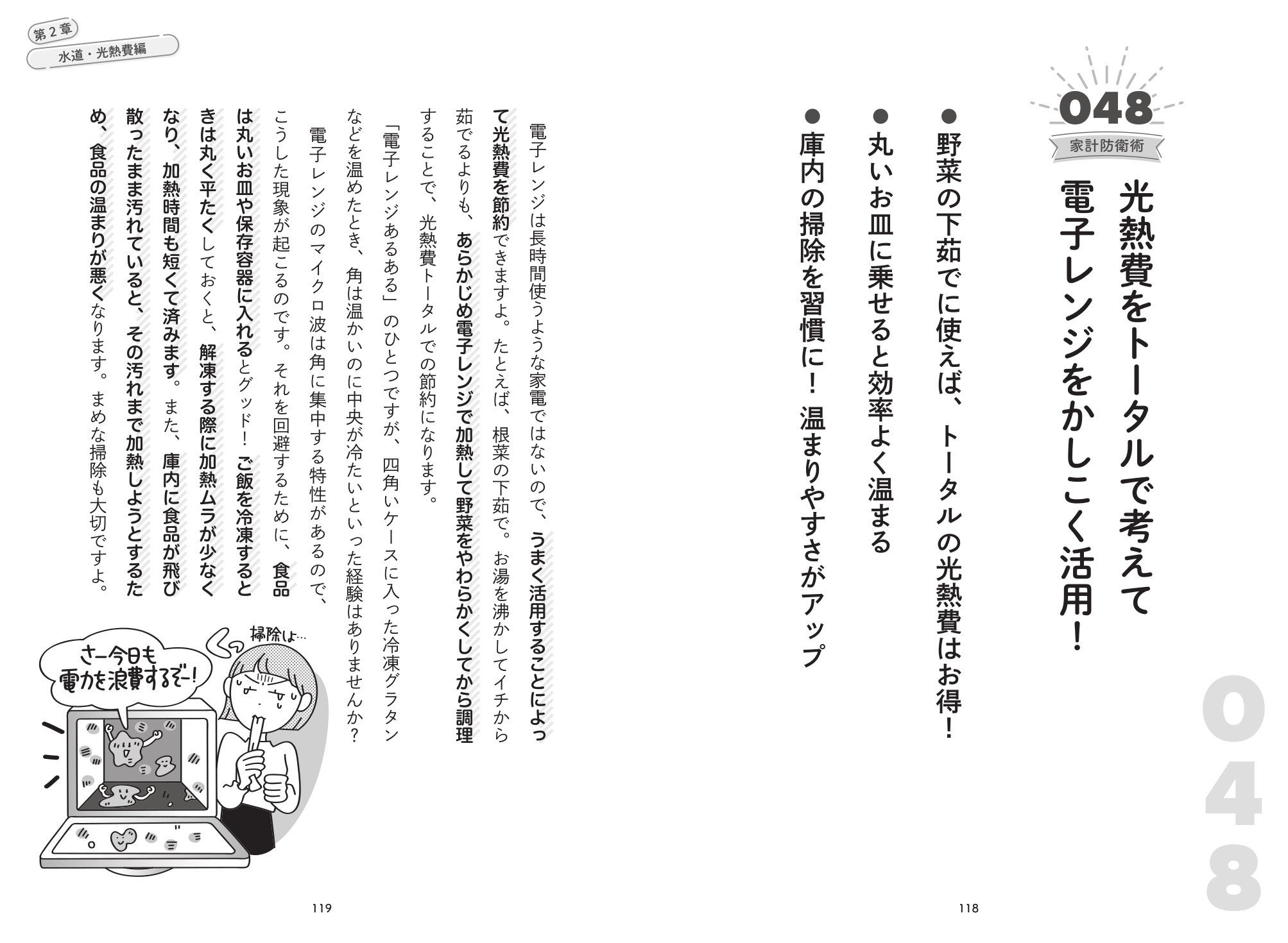 日々の暮らしの中で、何をどのようにしたらより節約できるのか……。さまざまな生活シーンにおいて、誰でもすぐに取り入れられて、すぐに効果が期待できる、具体的な節約法をはじめ、基本や心得、根本的な問題の解決法など、100のメソッドを伝授!それぞれの家庭に合った節約のポイントもよくわかる、長続きして実用性も高い“家計防衛術”が詰まった一冊です。著者は“節約のプロ”としてただいまワイドショーやバラエティ番組、雑誌などのメディアにも引っ張りだこの消費生活アドバイザー・和田由貴さん。物価や光熱費の高騰が続くこのご時世にとても役立つ、最新の情報も満載の書き下ろしです。
