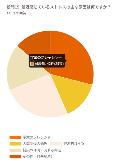 自分の趣味に打ち込んだり、リラックスできる時間を設けたりすることで、ストレスを発散している学生が多いようです。