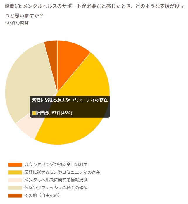 設問:メンタルヘルスのサポートが必要だと感じたとき、どのような支援が役立つと思いますか?