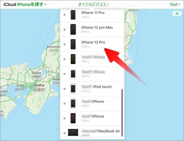 Step2:「すべてのデバイス」からiPhoneを選択します。