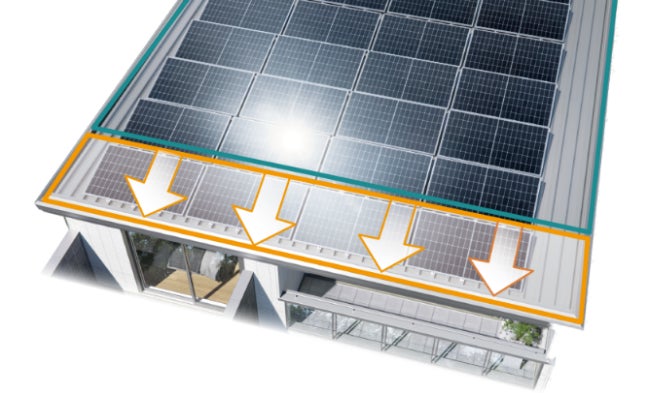 工場生産による優れた施工精度で実現する高気密・高断熱躯体をベースとし、意匠性に優れたトリプルガラス仕様のアルミ樹脂複合サッシと基礎断熱仕様の性能進化により断熱等級6に対応。当社の強靭なユニット構造体だからこそ可能なコーナー窓などメリハリのある開口設計で、断熱性とデザイン性を両立します。また、高効率給湯器や高断熱浴槽など、省エネ性に優れたハイグレード設備の採用により、再エネを除くエネルギー削減率35%以上(※10)を達成。庇の延長により屋根面積を拡大しPV容量を確保する独自のフラット屋根システム「e-Hat」を採用することで、都市部の狭小敷地でも創エネ量を確保し、再エネを含むエネルギー削減率100%以上(※10)を実現。エネルギーをかしこく管理する当社独自のHEMSによる高度エネルギーマネジメントの導入と合わせて、GX志向型住宅の性能要件(※6)に適合します。