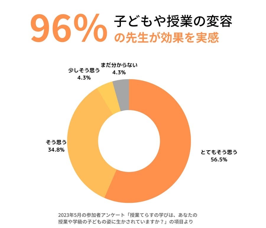 全国47都道府県から500名以上の小・中学校教員が利用する教員向けオンライン研修プラットフォーム。子ども主体の授業に転換できる独自メソッドで利用会員の96%が授業力向上および児童生徒へのよりよい影響を実感。