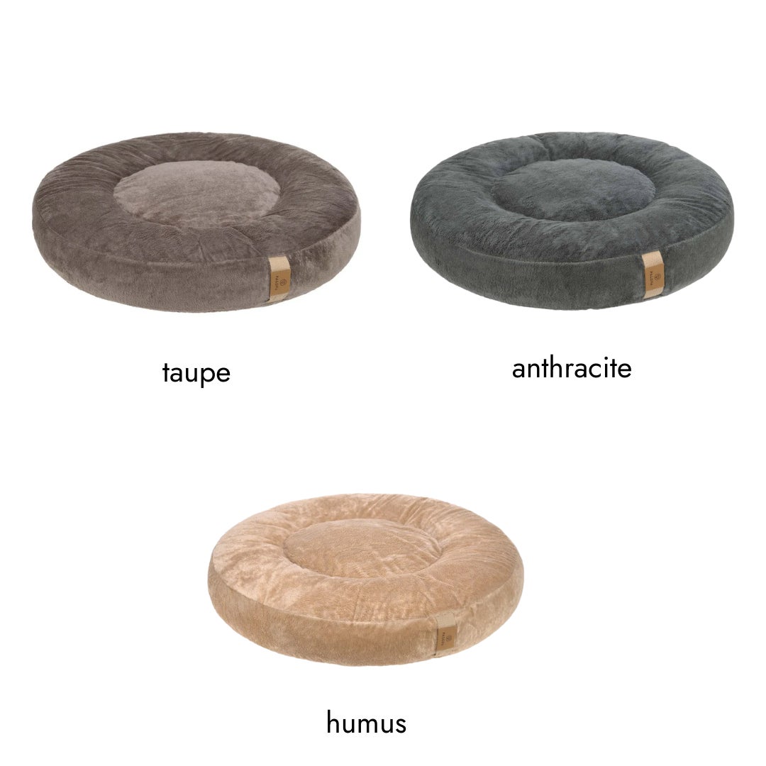 高い快適性と衛生面に配慮した、円形フォルムのドッグベッド。 ふわふわの素材に包まれて、愛犬が自然とリラックスできる空間を演出します。 滑り止め付きの裏面で、どんな床面でも安心して使用可能。モダンなカラーとフォルムで、インテリアに美しくなじみます。