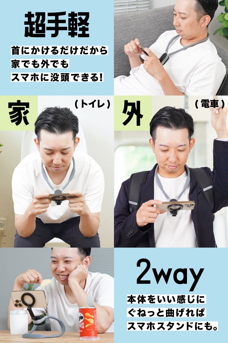 スマホが体とまさに一体化 トイレでも外でもいつでもスマホが見れるネックバンド