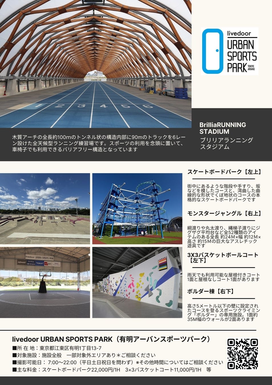 「livedoor URBAN SPORTS PARK」がロケ地登録 -東日印刷のロケ地提供サービス「Tロケ」-