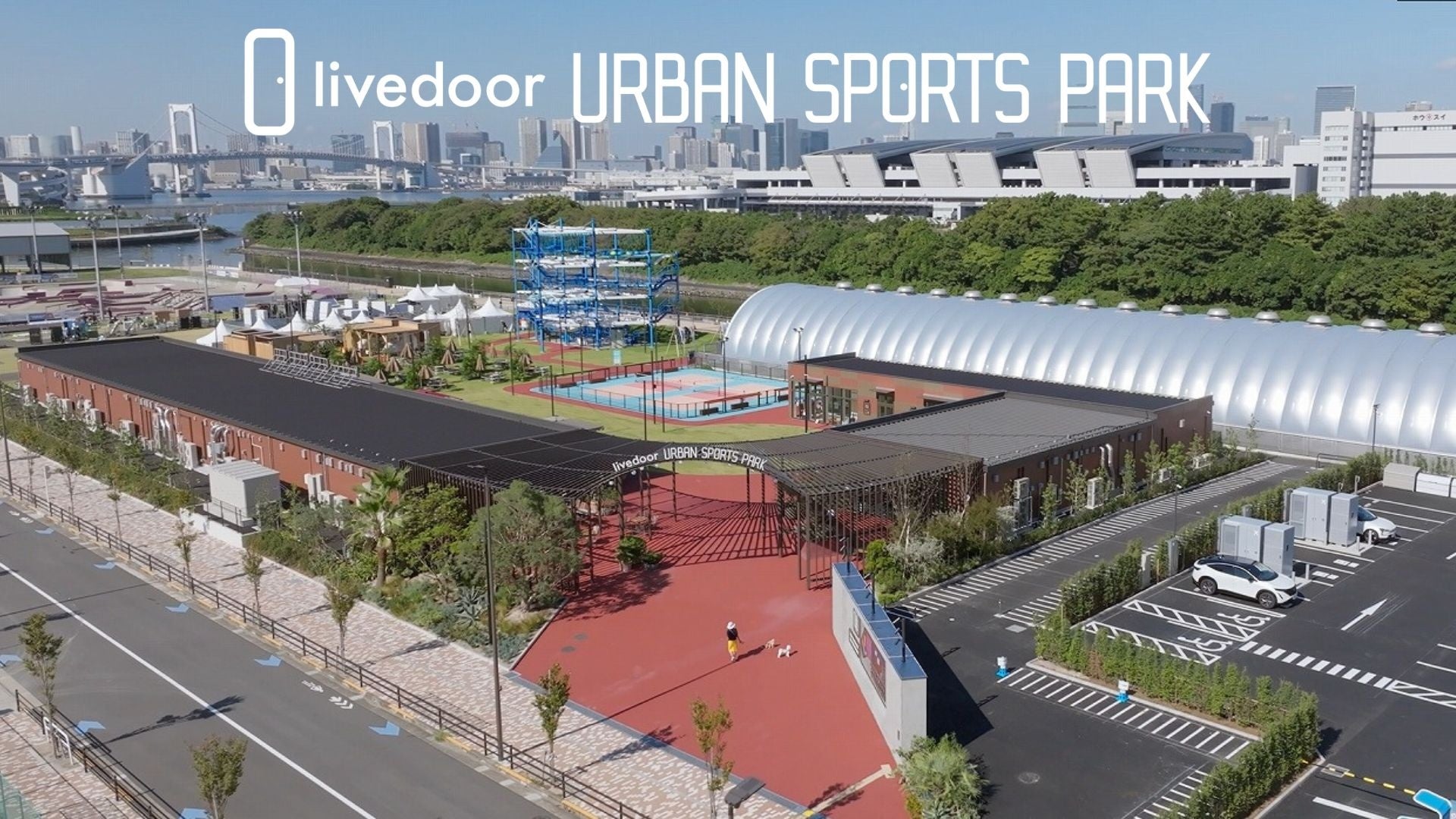 livedoor URBAN SPORTS PARKは、東京2020の有明会場跡地に誕生したアーバンスポーツ(※)やレクリエーションを楽しめる複合施設で、2024年10月12日に全面オープンしました。「大会レガシーゾーン」(スケートボードパーク/3×3バスケットボールコート/ボルダー棟)と「多目的ゾーン」(ロープアスレチック/ランニングスタジアム/ビックルボールコート)で構成され、天然芝の広場や店舗棟も備えます。「跡地を、みんなで遊べる聖地へ」を合言葉に、仲間や観客と一体となって楽しむアーバンスポーツの魅力を通じて、地域と世代をつなぐ憩いの場となっています。