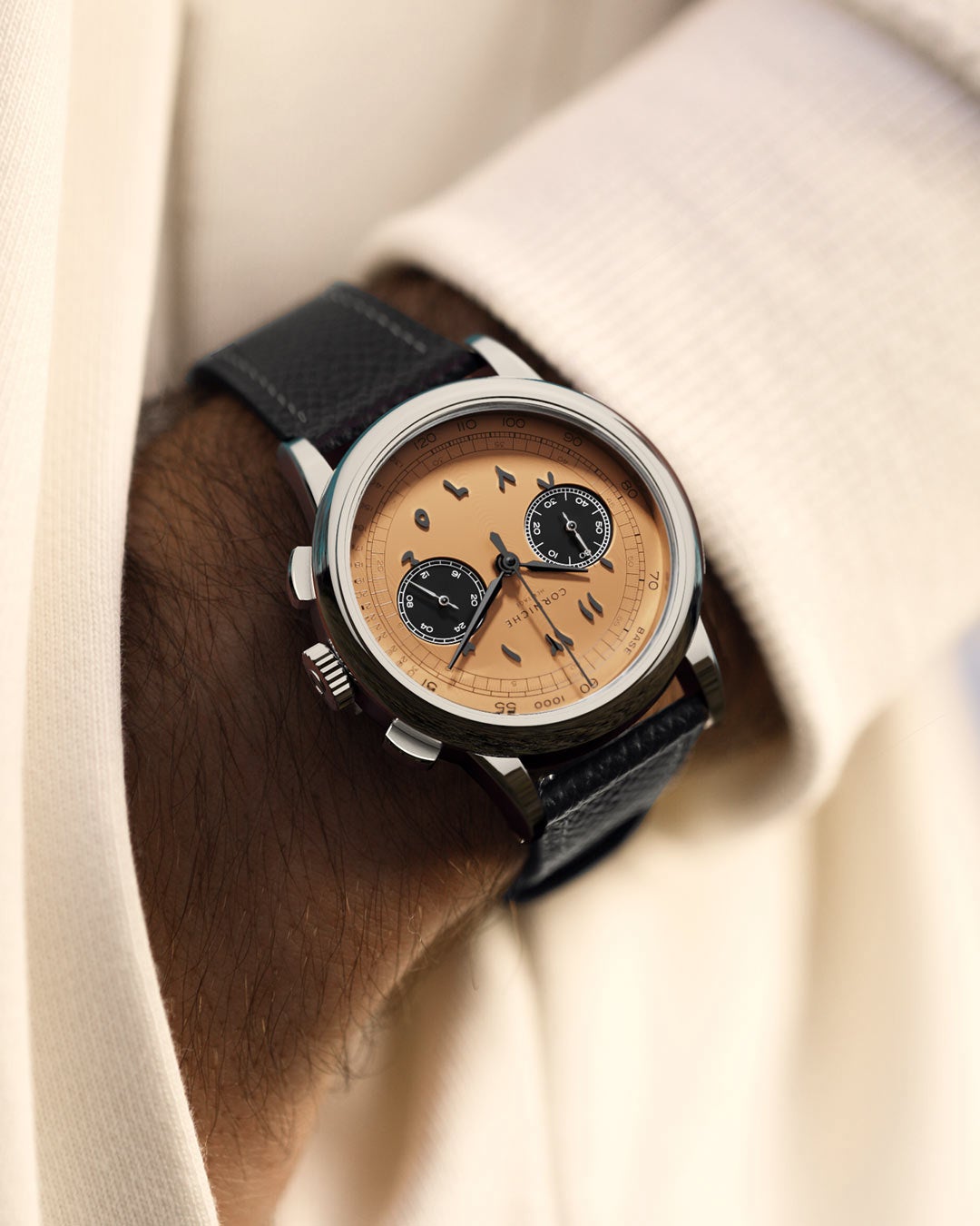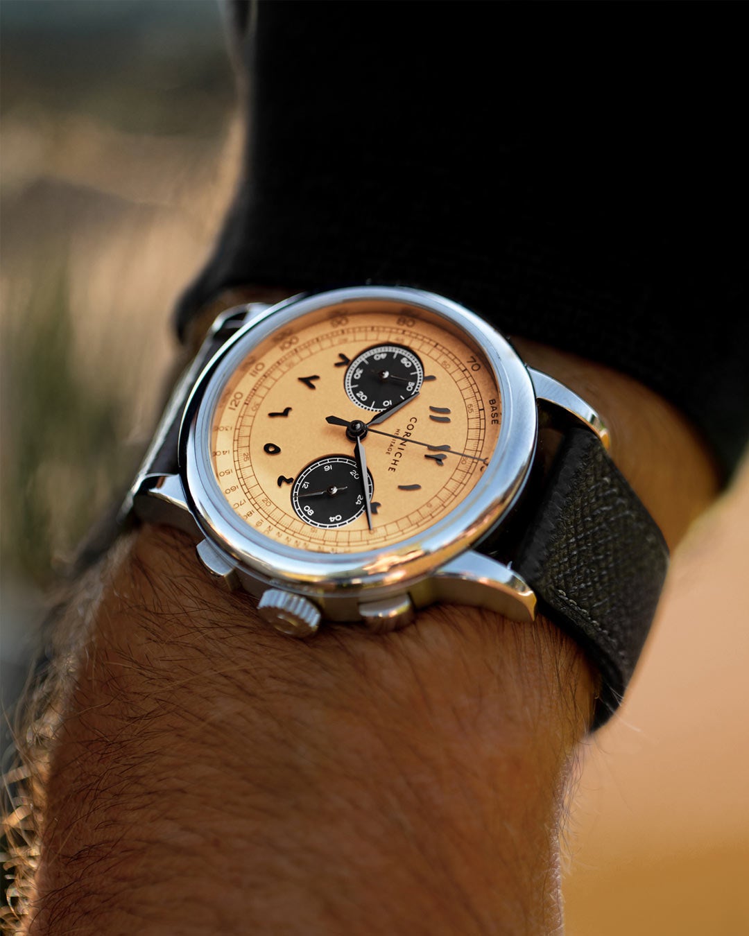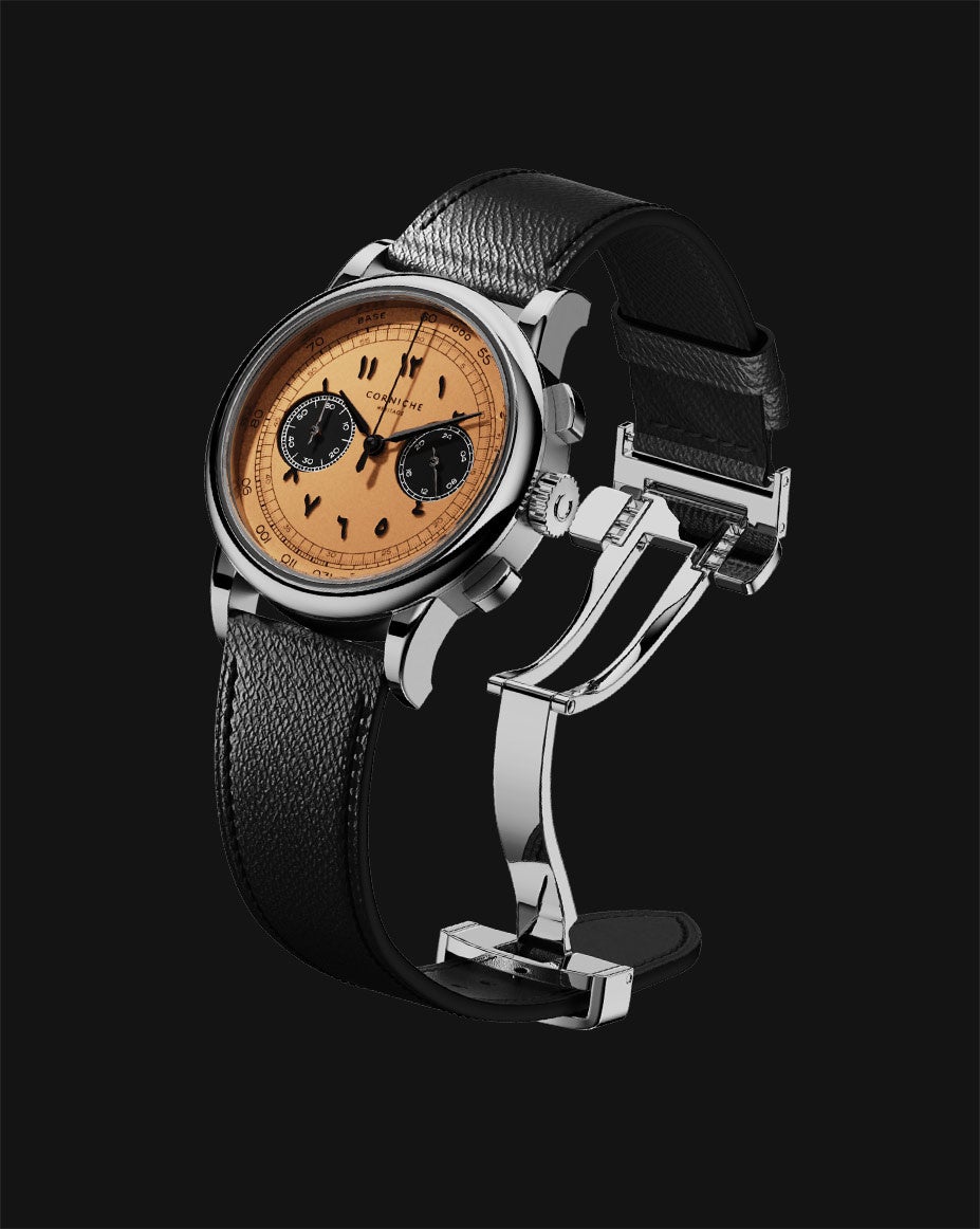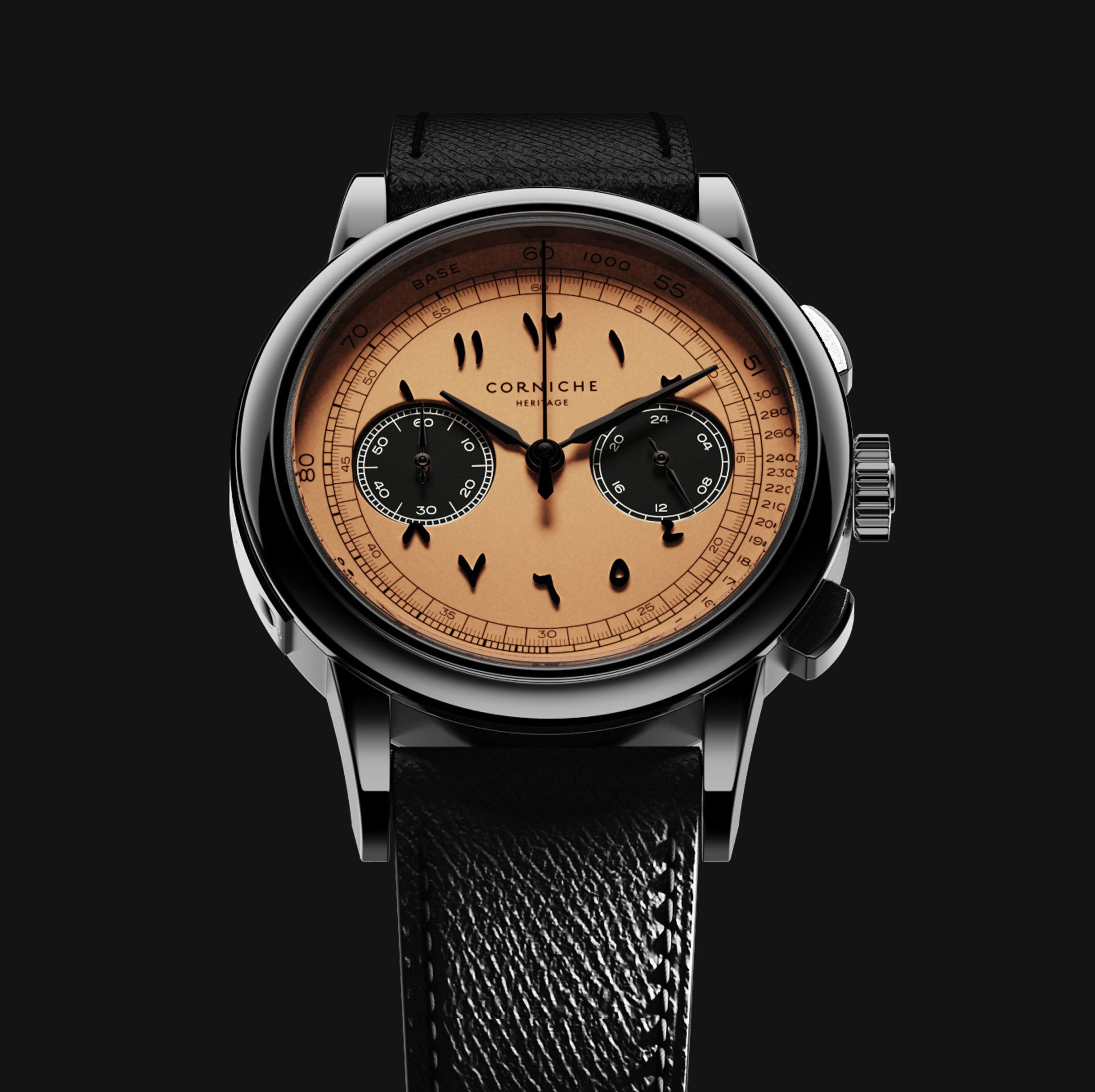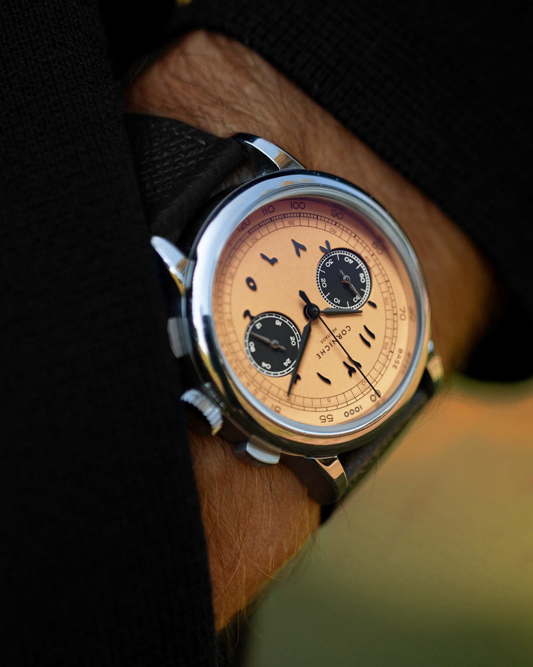 スウェーデン発「CORNICHE」 - 250本限定クロノグラフモデルアラビア語数字が際立つサーモンダイヤル「Mirage Chronograph(ミラージュ クロノグラフ)」登場