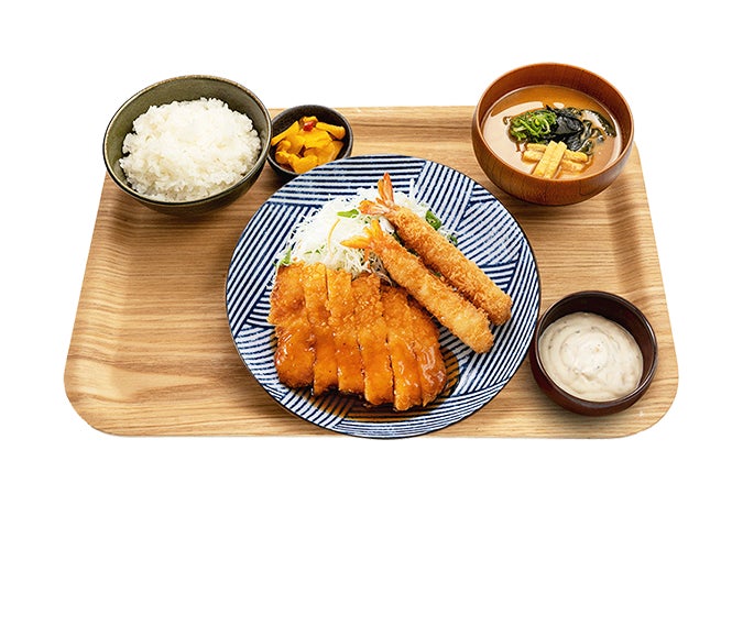 ※定食屋宮本むなしの店内で「サクサク鶏むね肉のチキン南蛮とエビフライ定食(980円税込み)」1人前をお召し上がりいただけます。(めしや宮本むなし店内ではご利用いただけません)