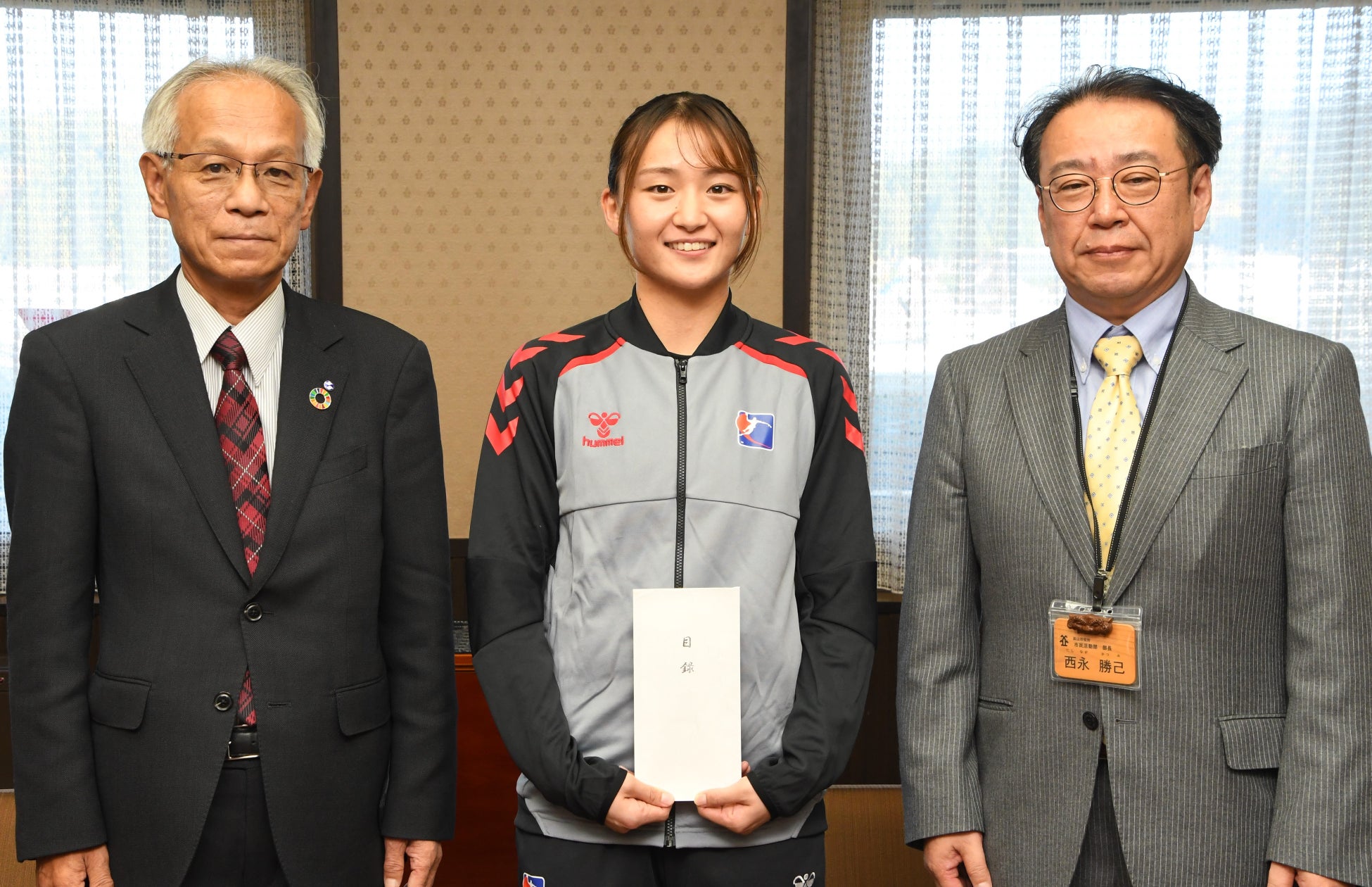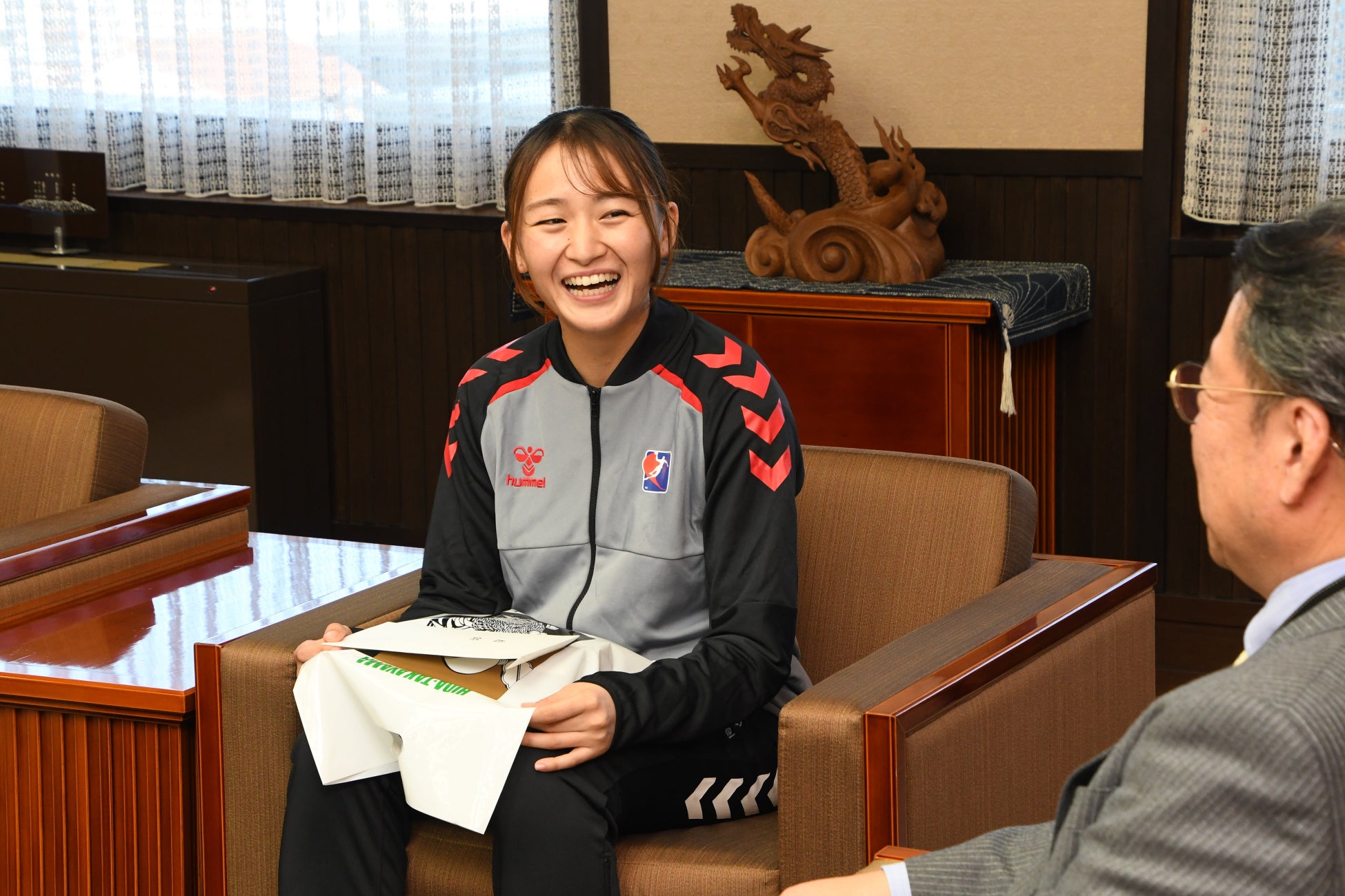 チームによると、ブラックブルズの選手が主要国際大会の日本代表に選出されるのは初めてで、令和6年11月13日(水)に高山市役所で行われた激励会では、西永市民活動部長へ選出の喜びと大会への意気込みを語りました。