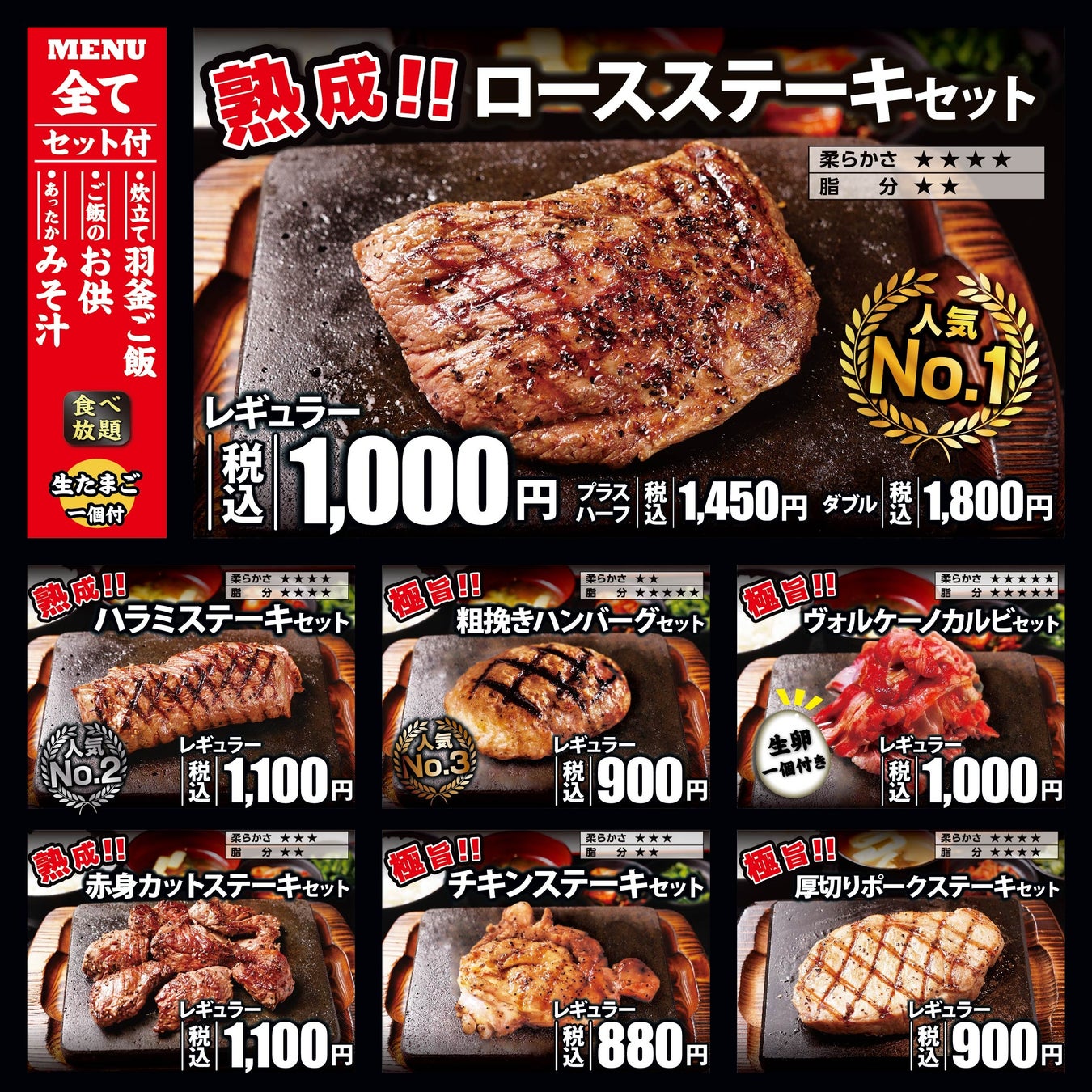 "ステーキを手軽にお腹いっぱいに”