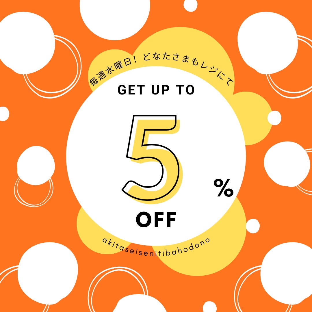毎週水曜日恒例の【5%割引き】を大創業祭にて実施します。