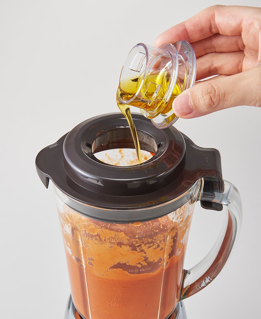 ふたのキャップは大さじ1杯(約15mL)が量れる仕様で、材料の追加や味の調節に大活躍!