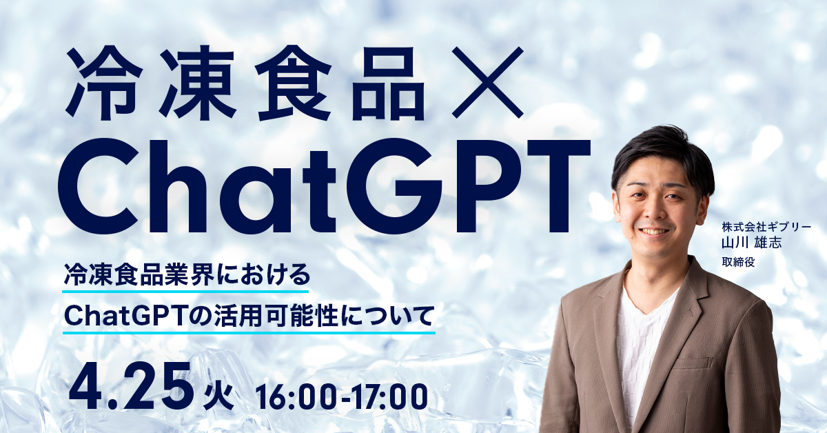 AIチャットボット、AI-FAQなどの業務自動化ソリューションを提供する株式会社ギブリー(本社:東京都渋谷区、代表取締役社長:井手高志、以下ギブリー)は、一般社団法人フローズンエコノミー協会(所在地:東京都大田区、代表理事:山口翔)が4月25日(火)に開催する、"冷凍品業界"の問題共有・課題解決のためのオンライン勉強会「第11回フロエコ勉強会」に参加し、当社取締役 山川 雄志が「冷凍食品業界におけるChatGPTの活用可能性」をテーマに登壇します。