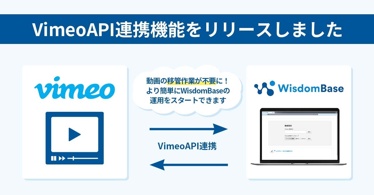 WisdomBase、動画配信プラットフォームVimeoとのAPI連携機能をリリース