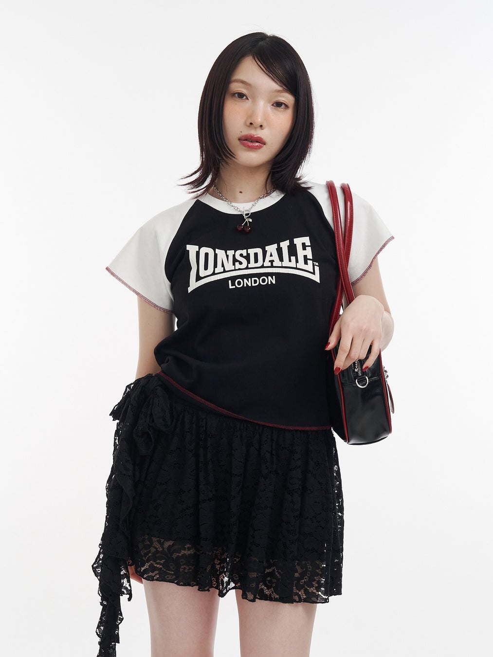 本コラボレーションではLONSDALEの象徴的なロゴをあしらった、ラグランTシャツ・ボストンバッグ・ソックスの全3型をラインアップ。大胆なロゴ使いが印象的な、存在感のあるコレクションに仕上げました。さらに、jouetieらしいキャッチーな配色や、ブランドのアイコンでもあるバラのモチーフを落とし込むことで、唯一無二のスタイルを提案します。
