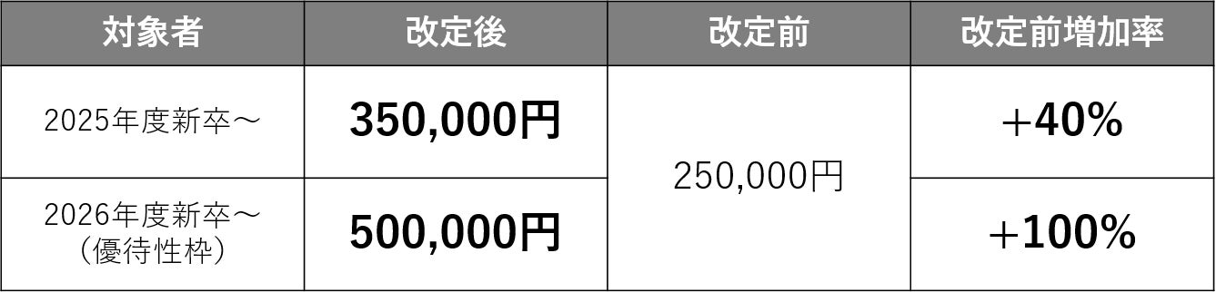 未来の経営人材の採用を目的とし、2025年4月より新卒初任給を大幅引き上げ