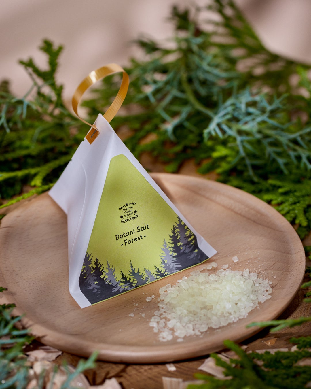 オリジナルのサシェとバスソルトは、おうち時間をゆったり過ごす方におすすめです。サシェは、冬の空気に似合うヒノキチップとカラマツ精油のウッディな香り。静かな森の息吹をぎゅっと閉じ込めました。ボタニソルトは、“森林浴”気分を楽しめるバスソルト。天然精油〈ヒノキ・ひば・サイプレス〉のやさしい保湿成分でしっとりなめらか肌へ導いてくれます。