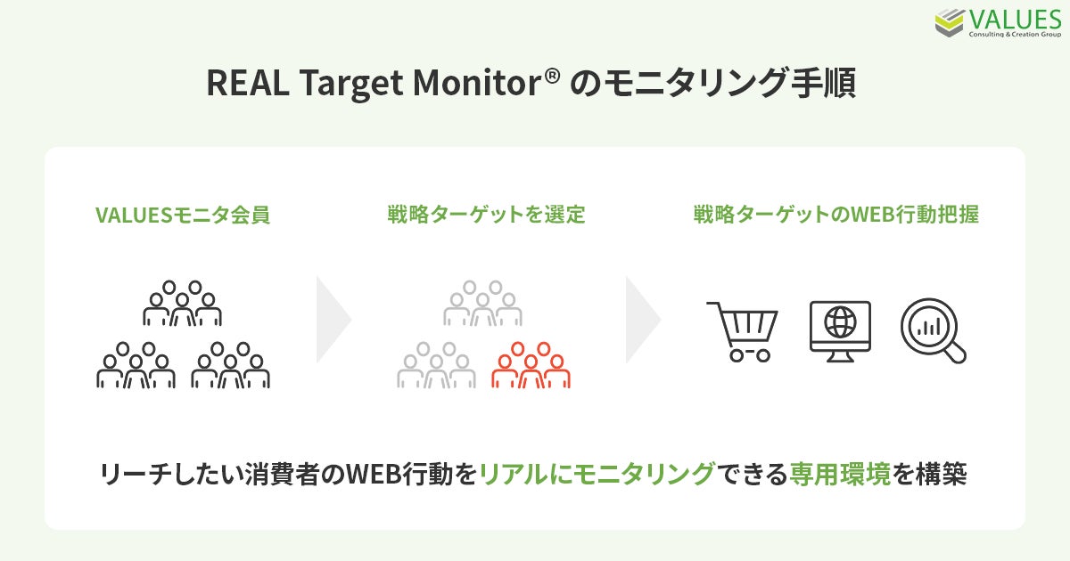 インターネット行動ログ分析によるマーケティング調査・コンサルティングサービスを提供する株式会社ヴァリューズ(本社:東京都港区、代表取締役社長:辻本 秀幸、以下「ヴァリューズ」)は、リーチしていきたい消費者(戦略ターゲット)のWeb行動をリアルにモニタリングし、LTVの高いユーザーを獲得するプロモーション支援パッケージ「REAL Target Monitor®」を正式リリースいたしました。