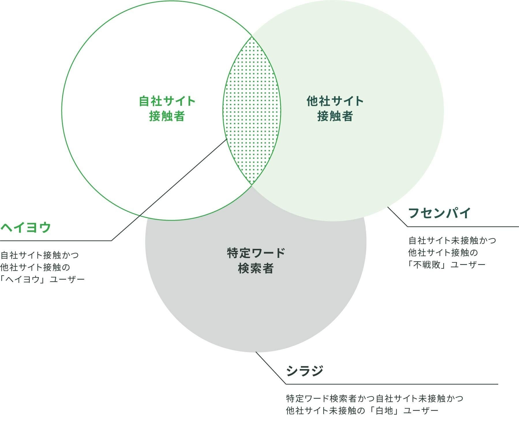 高いポテンシャルを持つ戦略ターゲットの定義例として、「シラジ」」「ヘイヨウ」「フセンパイ」セグメントをWeb行動ログベースで捉えることが可能です。