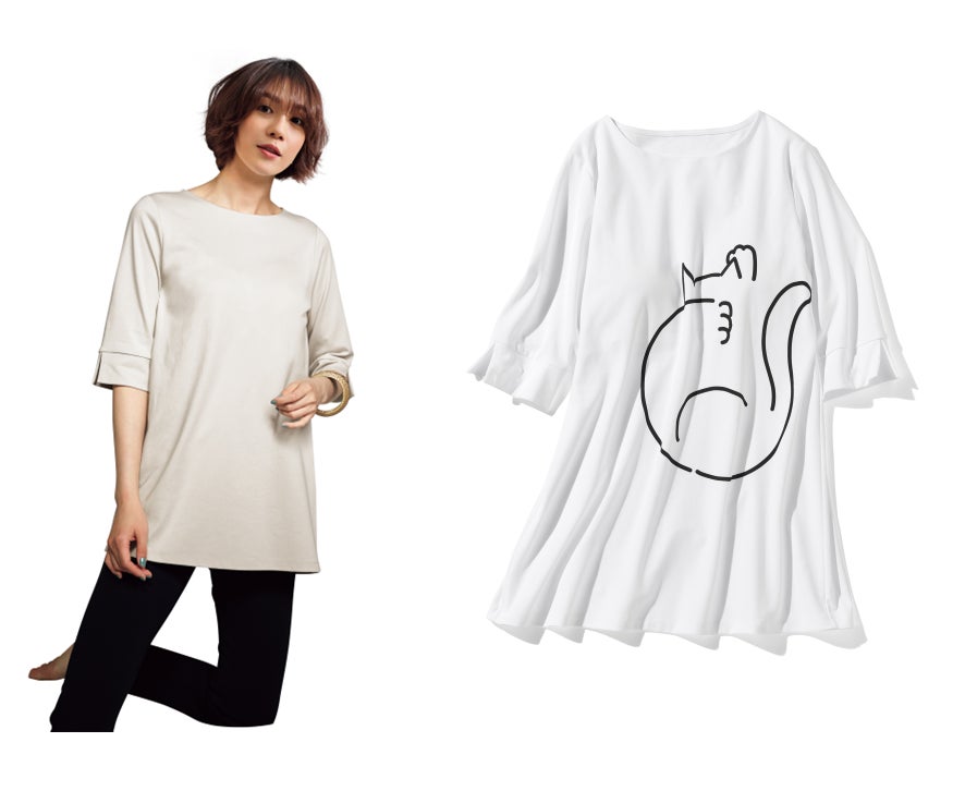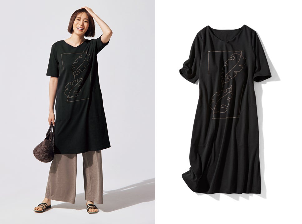 ゆったりAラインでレギンスやレギパン/UVスラブパンツと合わせて、ゆったりリラックススタイルがおすすめ。