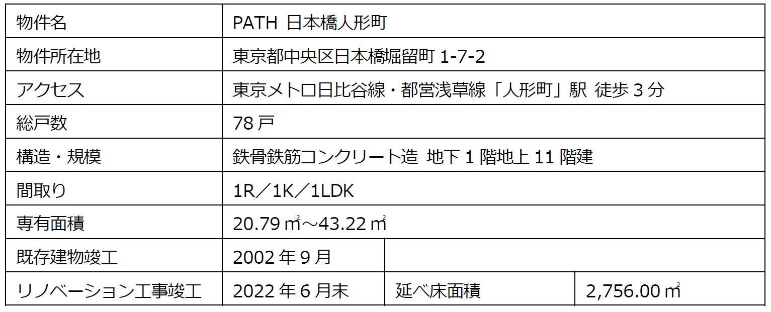 社会、くらしをリノベーションし、あなたと環境にとって豊かな未来をつくる株式会社リビタ(本社:東京都目黒区、代表取締役社長:川島 純一、以下「リビタ」)は、「賃貸だからこそ柔軟に暮らす」ことを目指した新たなリノベーション賃貸マンション『PATH日本橋人形町』(読み:パス ニホンバシニンギョウチョウ)の改修工事を終え、全戸での募集を開始いたしました。