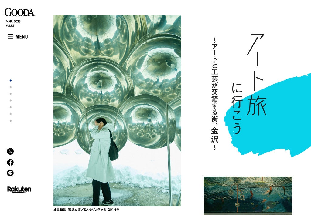 アートに触れる旅を提案する特集「アート旅に行こう」では、アートと工芸が交錯する街・金沢に注目し、金沢21世紀美術館やギャラリー「ASTER」、柳宗理研究所、九谷光仙窯、金沢美術工芸大学などのアートスポットを、モデル・俳優の水上剣星さんと訪れました。春の旅におすすめしたいトラックジャケットを使った軽やかなコーデも紹介しています。印象的な作品やビジュアルの連続で、思わず旅に出たくなるような最新号を、ぜひチェックしてください。