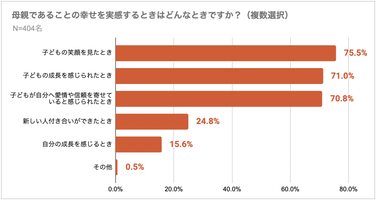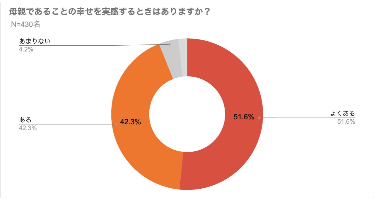 - 母親であることの幸せを実感する時「ある」93.9%、子どもの笑顔と成長実感が鍵