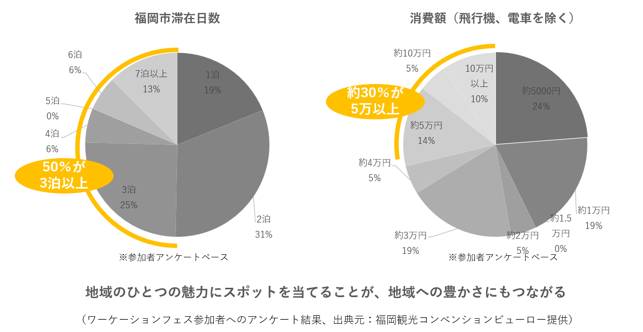 1日のイベントをきっかけに長期滞在に繋がり、参加者の約半数が福岡市に3泊以上滞在