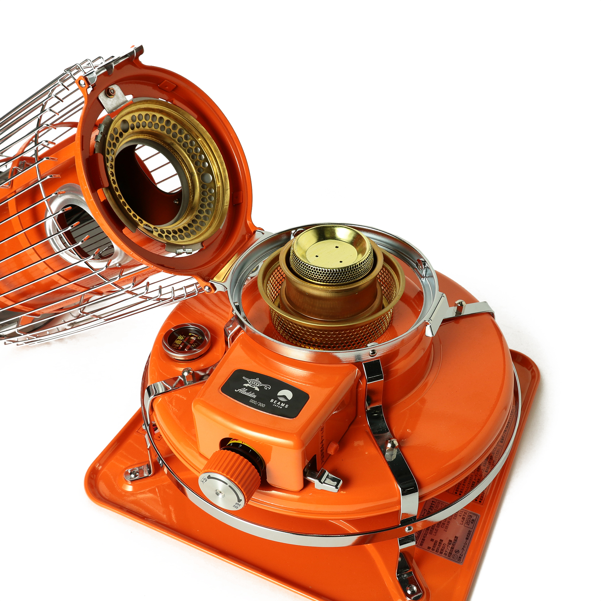 アラジンブランドの代表作「アラジン ブルーフレーム」は、誕生から80年以上も構造を大きく変えずに品質と安全性を向上させたロングセラー商品です。BEAMS JAPANでは一昨年、昨年と、同店のキーカラーである「藍色(あいいろ)」を本体に採用したコラボレーションモデルを発表し、好評を博しました。今年はその反響にお応えして「アラジン ブルーフレーム BEAMS JAPANモデル」第3弾の新色・「橙色(だいだいいろ)」を発売します。本体はビームスのコーポレートカラーであるオレンジ色で、これまで通りアラジンとBEAMS JAPANのロゴをプリントしたオリジナル収納カバーも付属します。また、新色の発売にあわせて一昨年と昨年も即日完売した「藍色」も数量限定で販売します。
